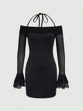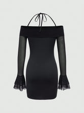 More sizes availableMOD Women'S Off Shoulder Halter Neck Mesh DressColor: Black Style: Sexy Pattern Type: Plain Details: Contrast Mesh, Backless, Tie Back Neckline: Off the Shoulder Sleeve Length: Long Sleeve Type: Bodycon Sleeve Type: Flounce Sleeve, Cold Shoulder, Flare Sleeve Waist Line: Natural Hem Shaped: Pencil Length: Short Fit Type: Slim Fit Fabric:...