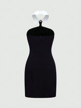 More sizes availableMOD Women'S Color Block Halterneck DressColor: Black Style: Sexy Pattern Type: Plain Details: Backless, Contrast Collar, Button Neckline: Halter Sleeve Length: Sleeveless Type: Bodycon Waist Line: Natural Hem Shaped: Pencil Length: Short Fit Type: Slim Fit Fabric: Non-Stretch Material: Woven Fabric Composition: 100% Polyester Care Instructions: Machine wash or...