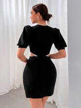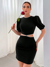 More sizes availableLadies' Hollow Out Black Minimalist Short Sleeve Dress With Waist Cut-Out For Romantic Date, Party, CommutingColor: Black Style: Elegant Pattern Type: Plain Details: Pearls, Beaded, Zipper Neckline: Round Neck Sleeve Length: Short Sleeve Type: Bodycon Sleeve Type: Puff Sleeve Waist Line: High Waist Hem Shaped: Pencil Length: Short Fit Type: Slim Fit Fabric: Medium Stretch Material: Knitted Fabric Composition:...