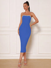 More sizes availableModphy Women's Sexy Rhinestone Decor Strapless Bodycon Party Bandage Dress Cocktail Formal DressColor: Blue Style: Party, Elegant Pattern Type: Plain Details: Split, Zipper Neckline: Strapless Sleeve Length: Sleeveless Type: Bodycon Waist Line: Natural Hem Shaped: Pencil Length: Midi Fit Type: Slim Fit Fabric: High Stretch Material: Knitted Fabric Composition: 95% Polyester, 5% Elastane Care Instructions: Machine...