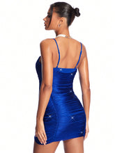 More sizes availableBAE Women'S Shiny Rhinestone Decorated Tassel Blue Slip Dress For New Year Party, Sexy NightclubColor: Royal Blue Style: Party, Sexy Pattern Type: Plain Details: Backless, Draped, Tie Back Neckline: Spaghetti Strap Sleeve Length: Sleeveless Type: Cami Lined For Added Warmth: No Waist Line: Natural Hem Shaped: Pencil, Straight Length: Mini Fit Type: Slim Fit Fabric: High Stretch Material:...