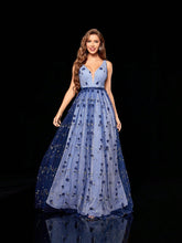 More sizes availableWomen's V-neck Romantic 3d Embroidery Contrast Color Glitter Maxi Evening DressColor: Blue Pattern Type: Plain Type: A Line Details: Backless, Contrast Mesh, Contrast Sequin Neckline: Deep V Neck Sleeve Length: Sleeveless Length: Long Hem Shaped: Flared Waist Line: High Waist Fit Type: Regular Fit Fabric: Non-Stretch Material: Embroidery Composition: 100% Polyester Care Instructions: Do...