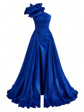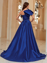 More sizes availableBelle Exaggerated Bowknot Decorated One Shoulder Evening Party DressColor: Blue Pattern Type: Plain Type: A Line Details: Ruched, Zipper, Split Thigh Neckline: Asymmetrical Neck Sleeve Length: Sleeveless Length: Maxi Waist Line: High Waist Fit Type: Regular Fit Fabric: Non-Stretch Material: Woven Fabric Composition: 100% Polyester Care Instructions: Hand wash or professional dry...