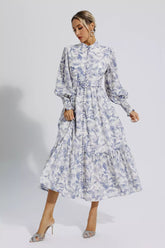 Madilynn Blue Floral Long Sleeve Maxi Dress - BlueShow off your elegance and add glamor with the Madilynn Blue Floral Long Sleeve Maxi Dress. Made of comfortable and smooth fabrics, with floral prints, delicate buttons, and a slit at the hem, this casual dress is full of design. For beach vacations or...