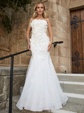 More sizes availableFloral Appliques Mesh Tube Wedding DressPattern Type: Plain Neckline: Spaghetti Strap Details: Appliques, Contrast Mesh, Ruched Sleeve Length: Sleeveless Length: Maxi Type: Mermaid Color: White Fit Type: Slim Fit Fabric: Slight Stretch Material: Mesh Fabric Composition: 95% Polyester, 5% Elastane Care Instructions: Hand wash,do not dry clean Sheer: No...