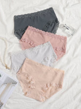 4pack Lace Trim Panty Set - MulticolorColor: Multicolor Pattern Type: Plain Rise: Mid Rise Details: Contrast Lace, Scallop Type: Sets Panty Type: Briefs Fabric: Slight Stretch Material: Knitted Fabric Composition: 60% Polyester, 35% Viscose, 5% Elastane Care Instructions: Hand wash,do not dry clean Product Measurements CMIN Size Length Waist Size...