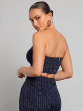 Striped Rib-knit Crop Tube Top - Navy BlueQuantity: 1 piece Color: Navy Blue Style: Sexy Pattern Type: Striped Neckline: Strapless Sleeve Length: Sleeveless Details: Zipper Hem Shaped: Asymmetrical Length: Crop Fit Type: Slim Fit Fabric: Non-Stretch Material: Polyester Composition: 95% Polyester, 5% Spandex Care Instructions: Machine wash, do not dry clean...