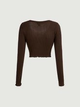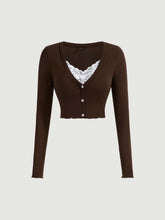 MOD Contrast Lace Button Front Ribbed Tee - Chocolate BrownQuantity: 1 piece Color: Chocolate Brown Style: Casual Pattern Type: Plain Neckline: V neck Details: Contrast Lace, Lettuce Trim, Rib-Knit, Button Front Sleeve Length: Long Sleeve Sleeve Type: Regular Sleeve Length: Crop Fit Type: Slim Fit Fabric: Slight Stretch Material: Polyester Composition: 67% Polyester,...