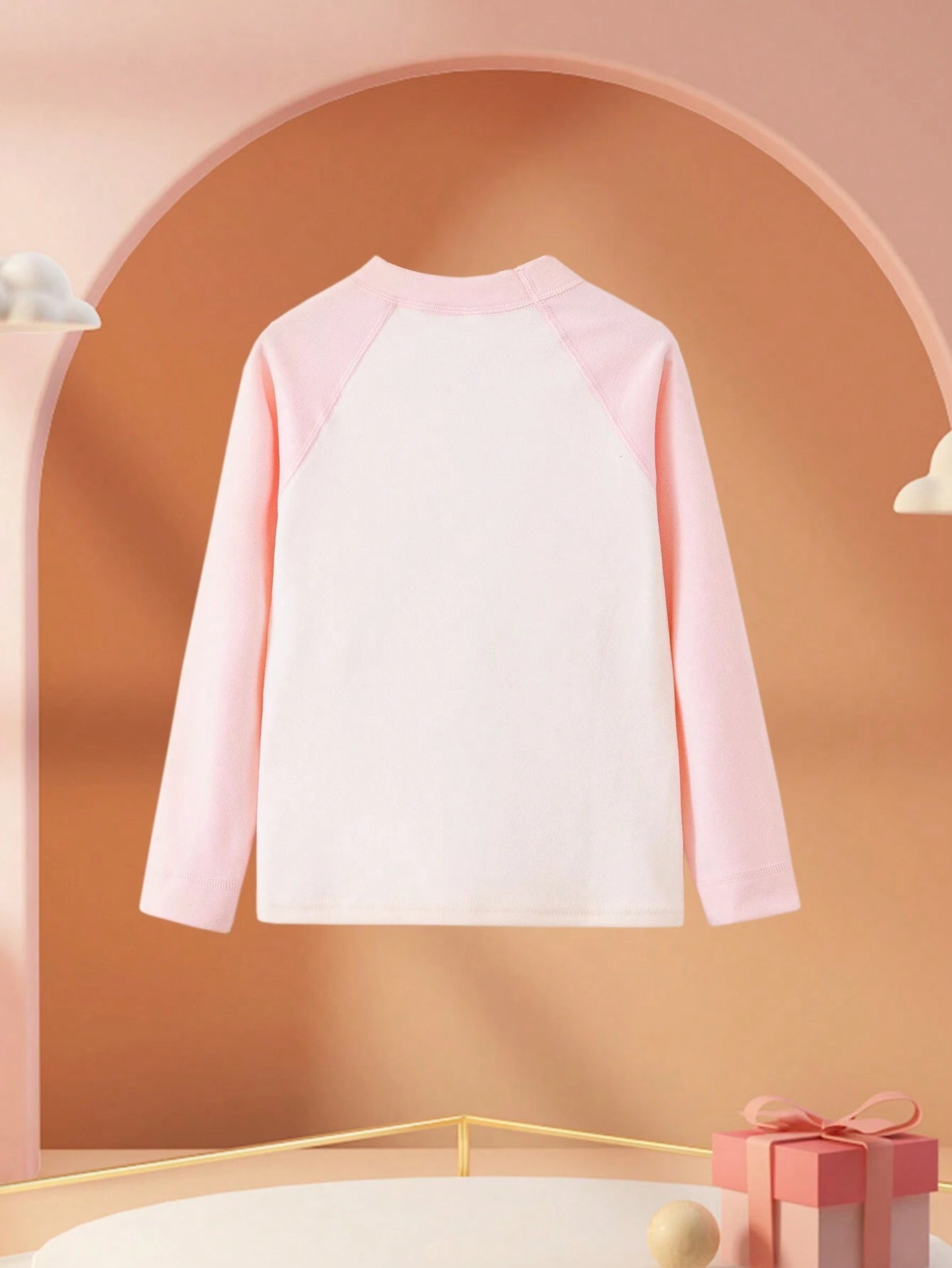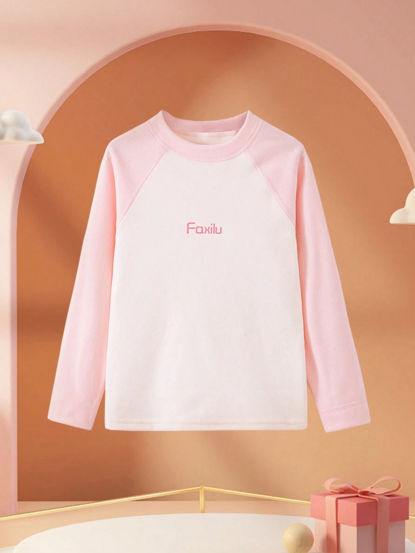 1pc Girls Seamless Warm Underwear Set, Double Layer Long Sleeve Tights, Letter & Solid Color Base Layer For Autumn/Winter
