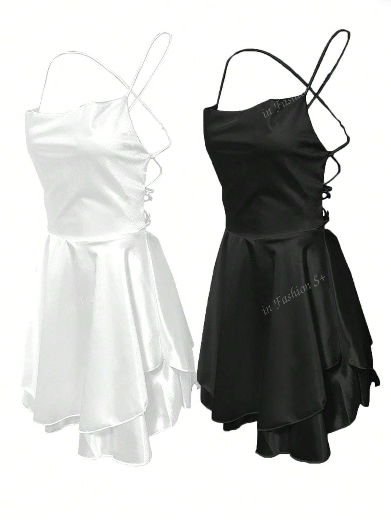 Details: Backless, Tiered Layer, Criss Cross Neckline: Spaghetti Strap Style: Sexy Type: Cami Waist Line: High Waist...