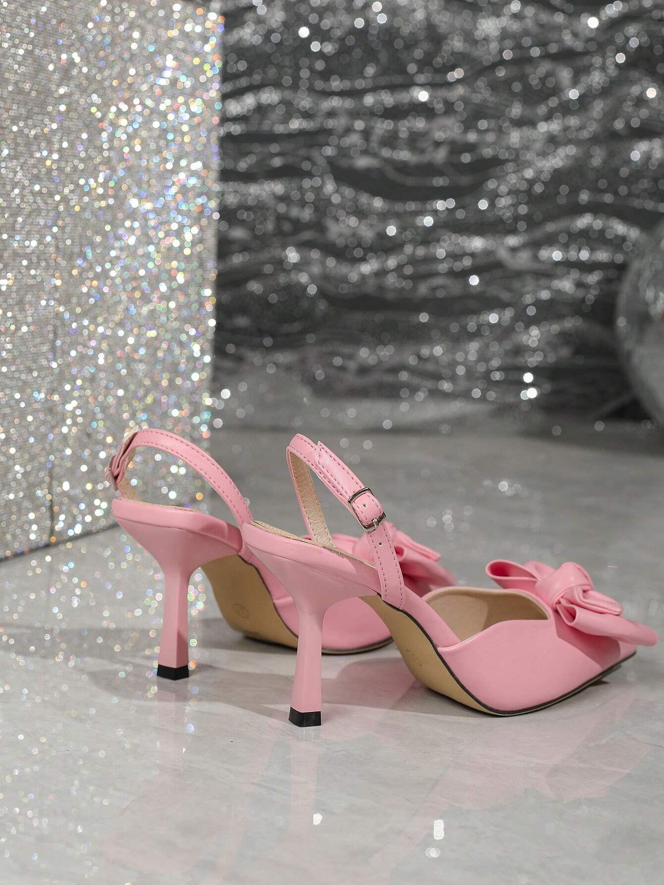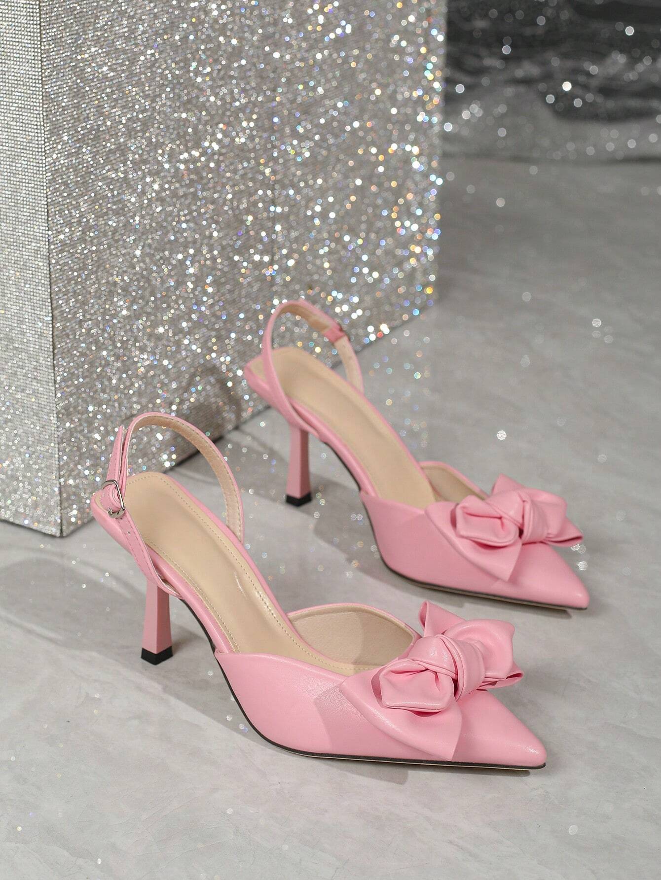 Details: Bow Style: Fashionable Color: Pink Type: Slingbacks Toe: Point Toe Pattern Type: Plain Strap Type: Slingbacks...