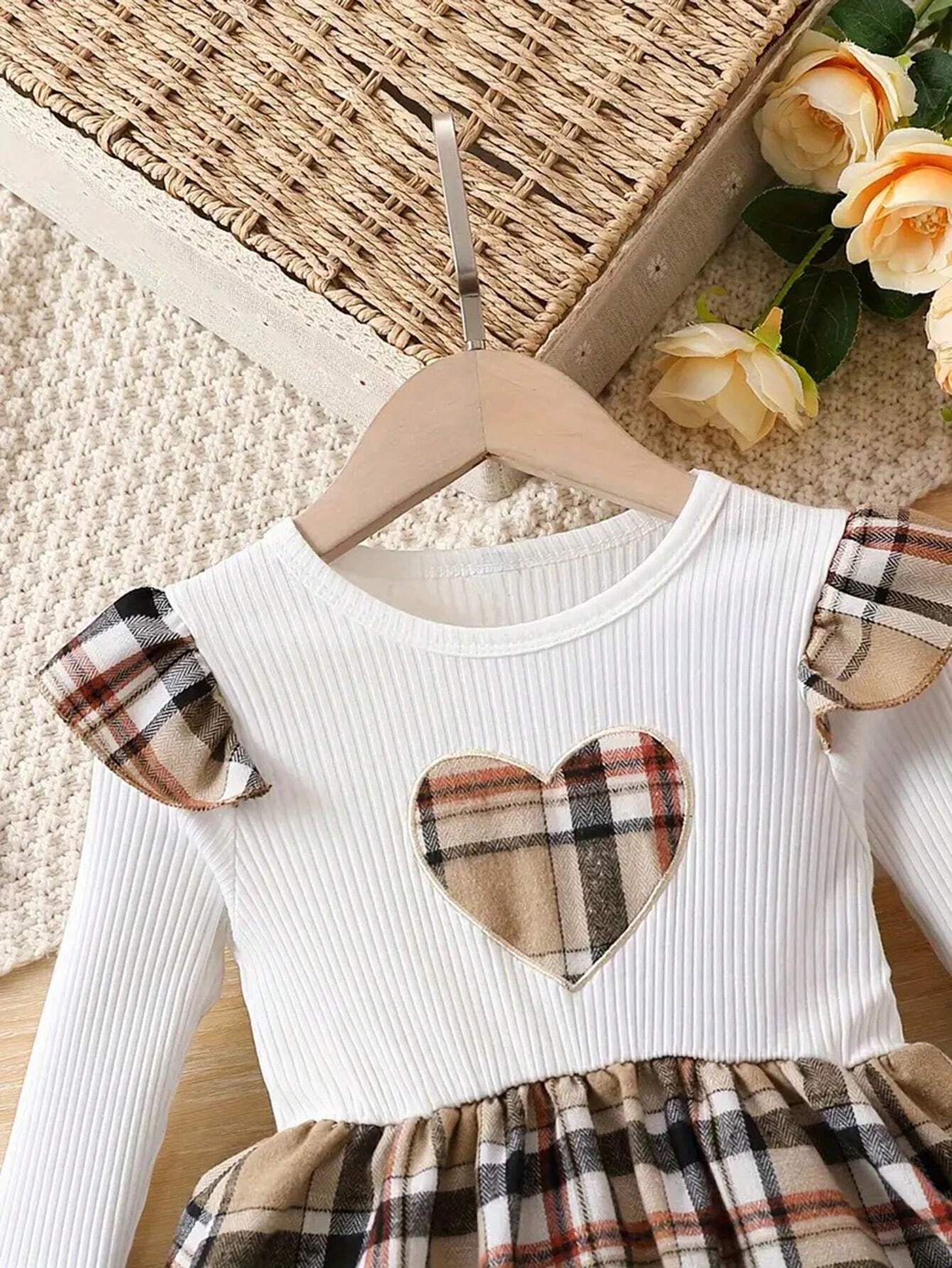 Adorable Girls' Plaid Dress With Heart Embroidery For Spring And Autumn