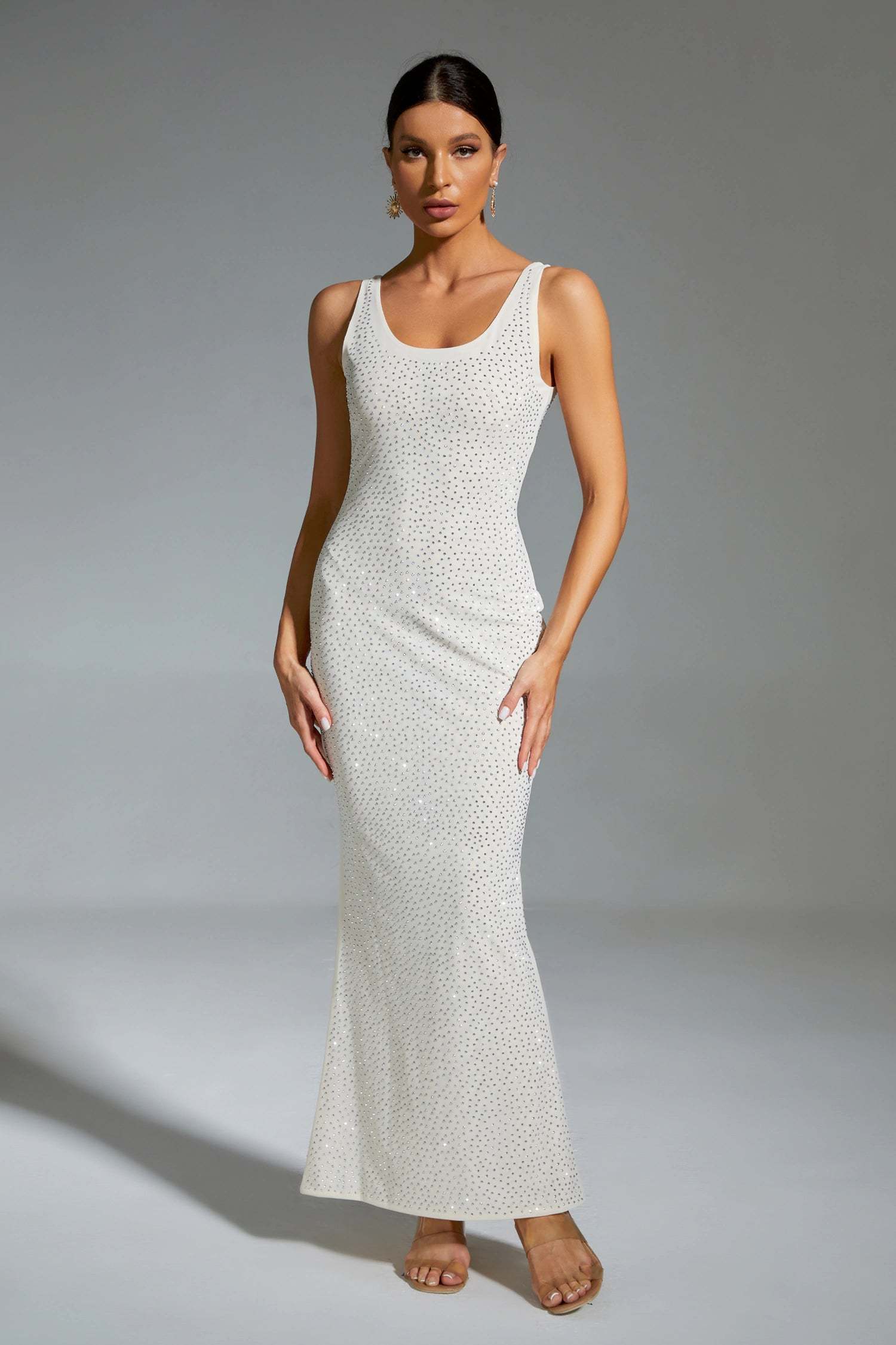 Avianna White Diamond Backless Maxi Dress