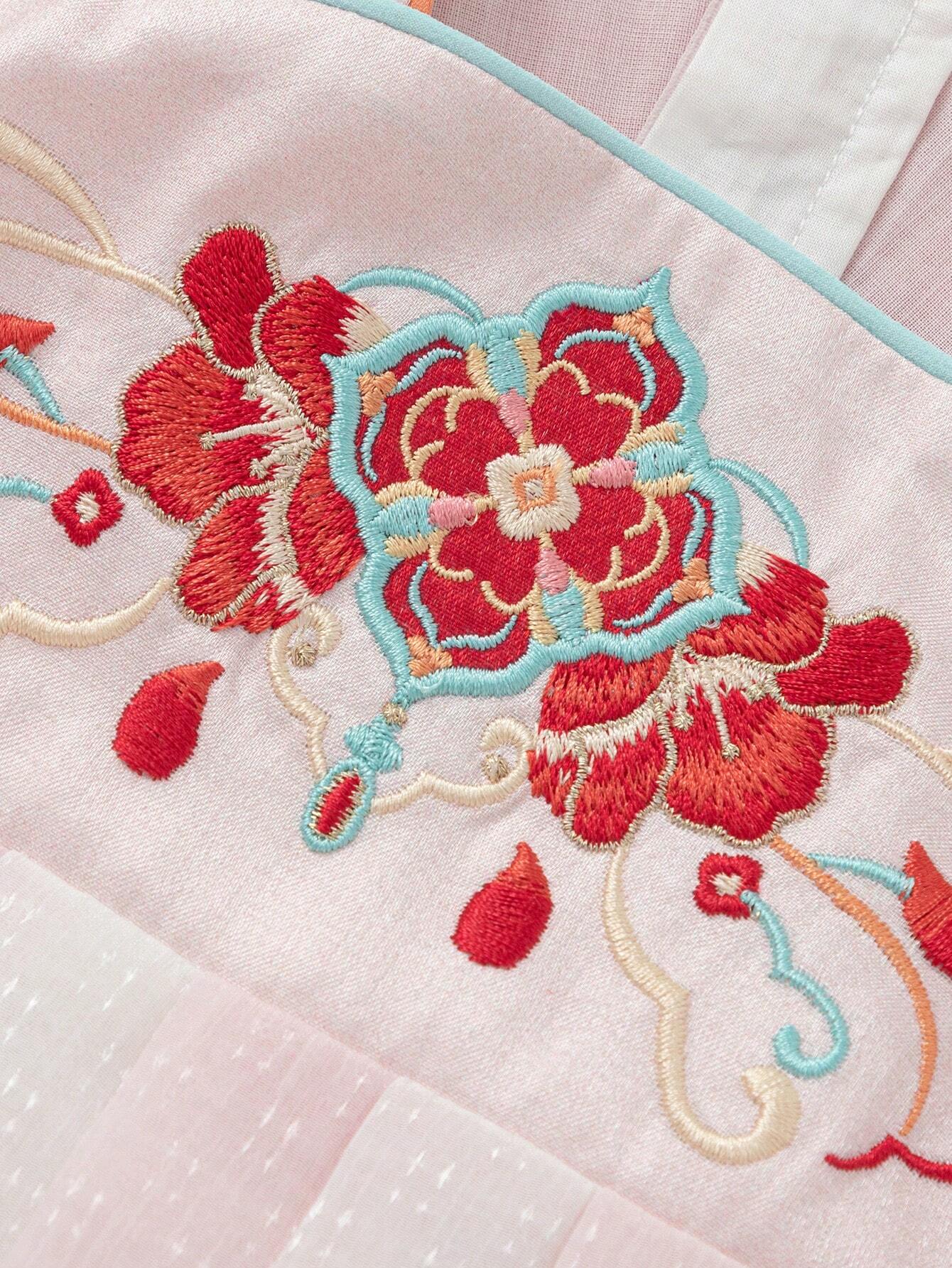 Details: Embroidery Neckline: Square Neck Sleeve Type: Regular Sleeve Type: Smock Waist Line: Natural Hem Shaped: Flared...