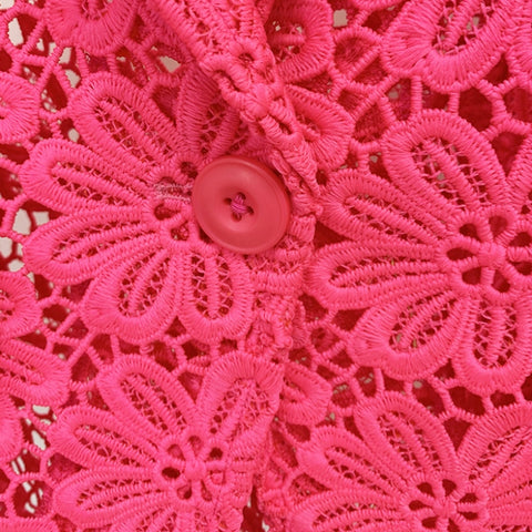 Look your best in this Belinda Lace Hollow Blazer Set in Hot Pink. Crafted from luxury lace, this set includes a fitted blazer and pants - perfect for creating an eye-catching ensemble. This blazer set is the perfect blend of sophistication and femininity.
