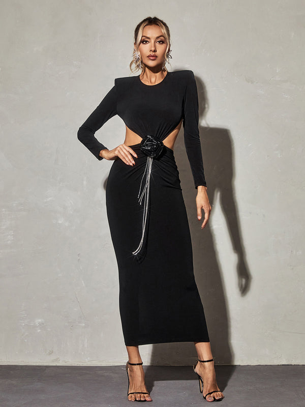 The Chandani Long Sleeve Flower Fringe Midi Dress is a stunning embodiment of grace and femininity. With its long sleeves and midi length, it offers an elegant and modest silhouette, while the intricate flower fringe detailing adds a whimsical and romantic touch. This dress is a perfect choice for those seeking a sophisticated yet playful look for formal events or special occasions.