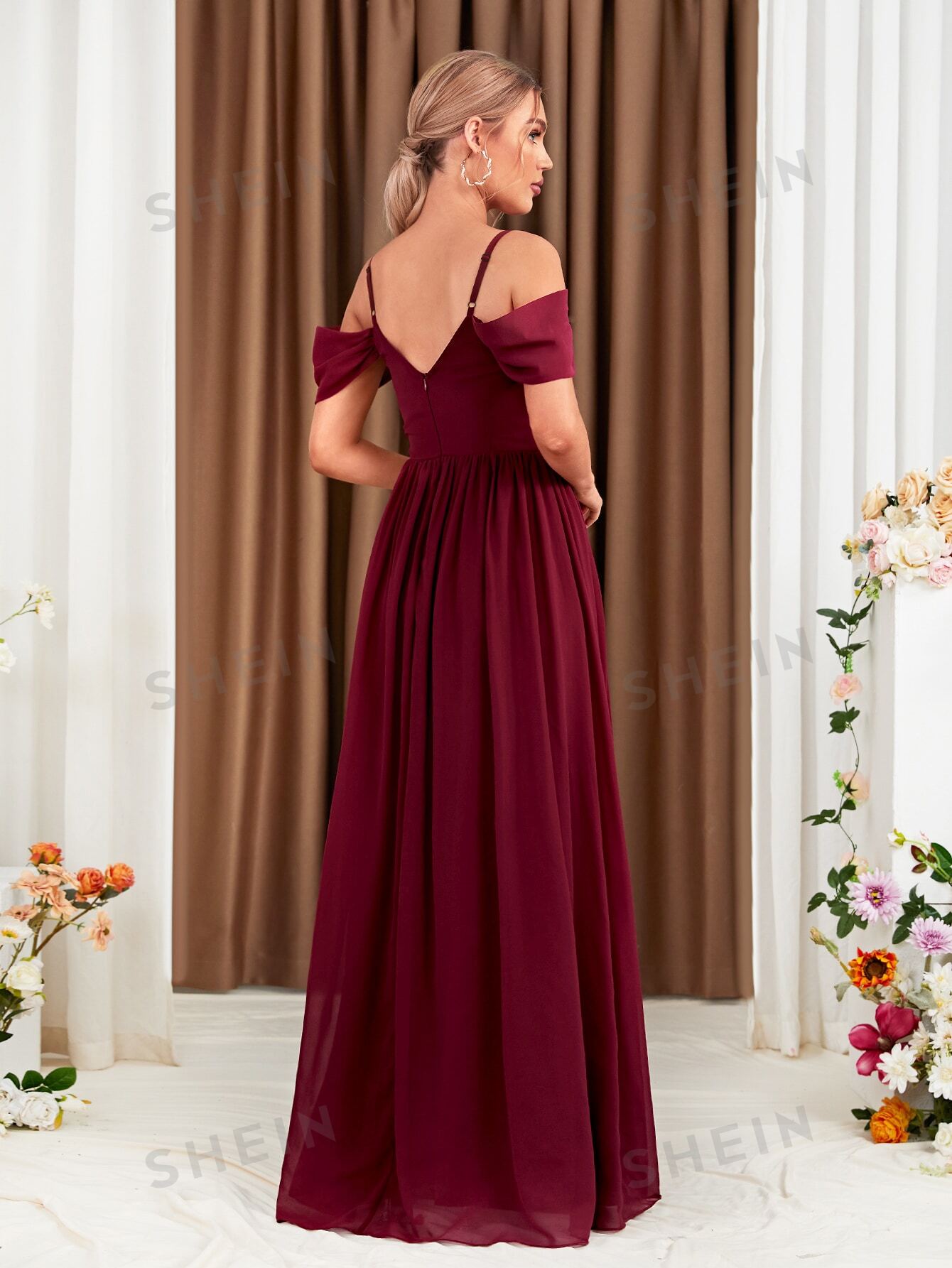 Cold Shoulder Split Thigh Chiffon Bridesmaid Dress