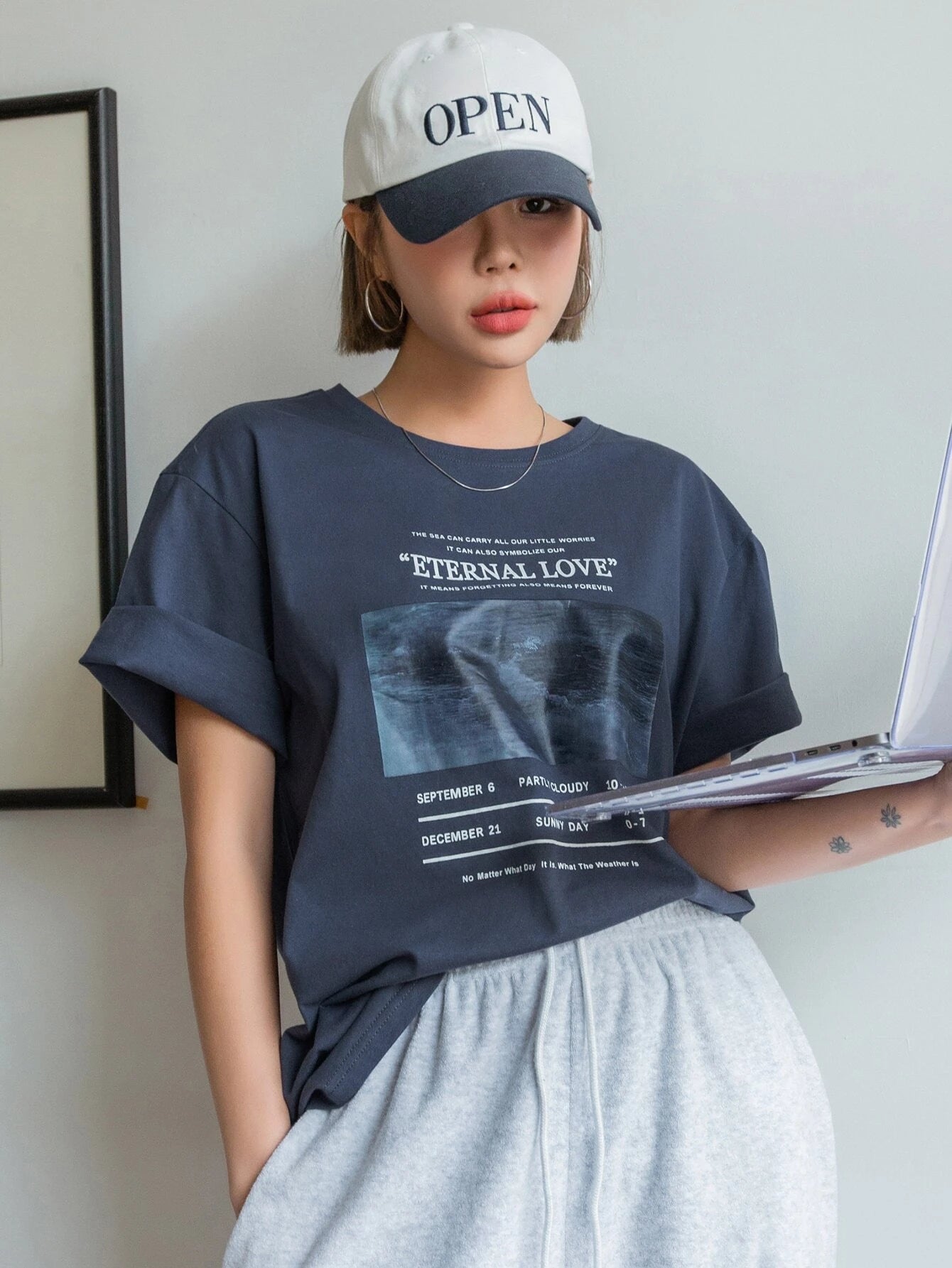 Color: Dusty Blue Style: Casual Pattern Type: Slogan Neckline: Round Neck Sleeve Length: Short Sleeve Sleeve Type:...