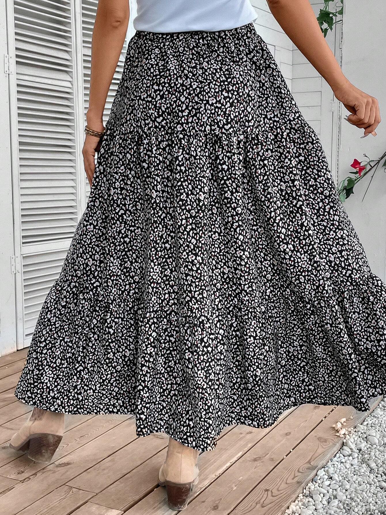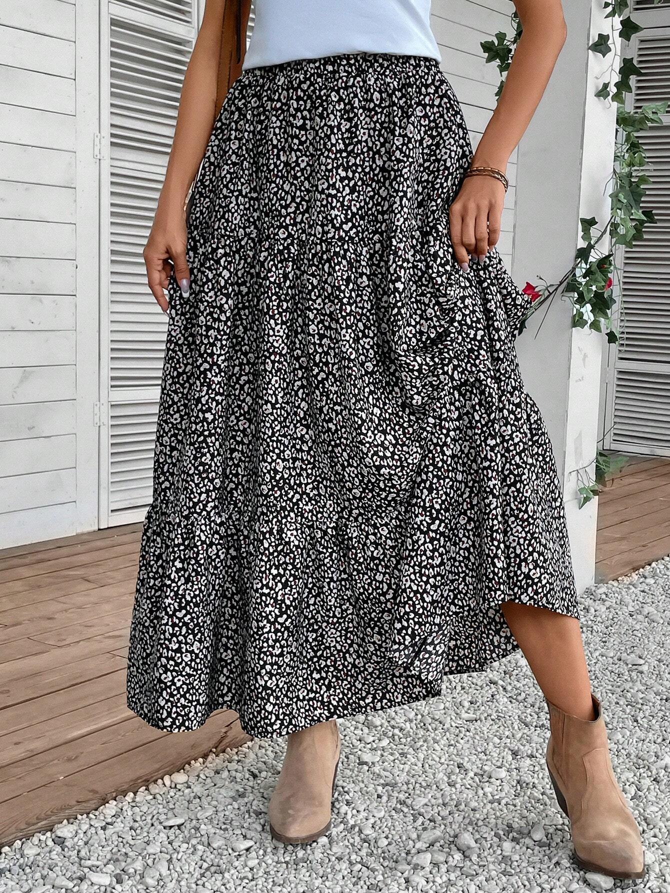 EMERY ROSE Allover Print Ruffle Hem Skirt