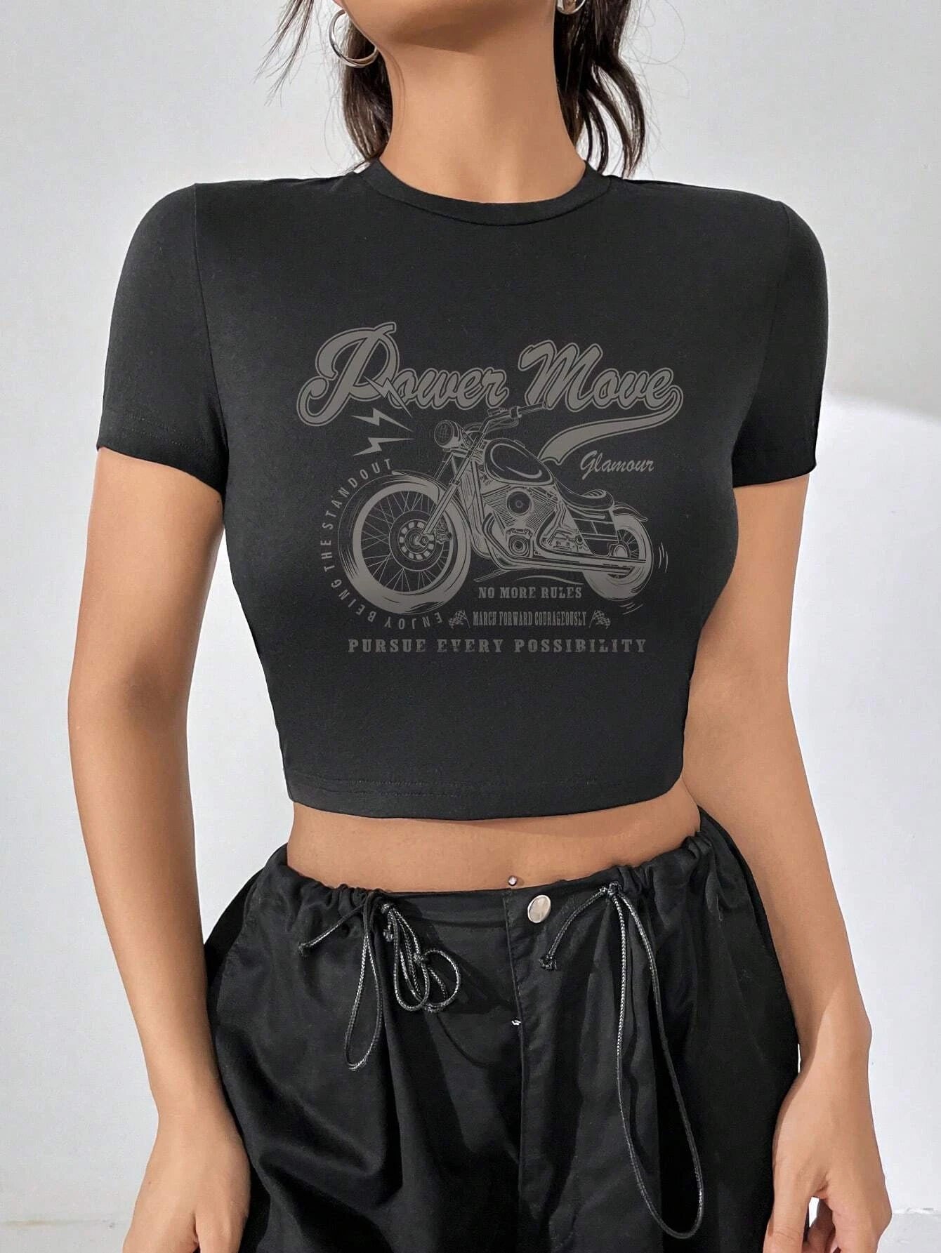EZwear Motorcycle & Letter Graphic Crop Tee