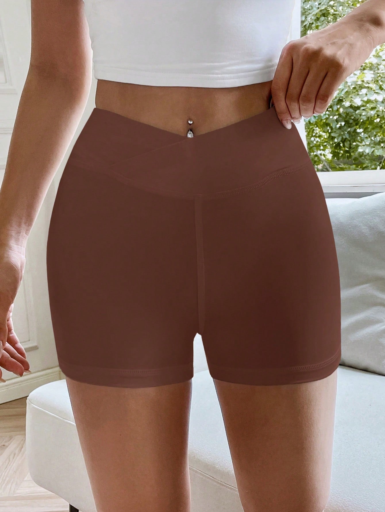EZwear Solid Asymmetrical Waist Biker Shorts