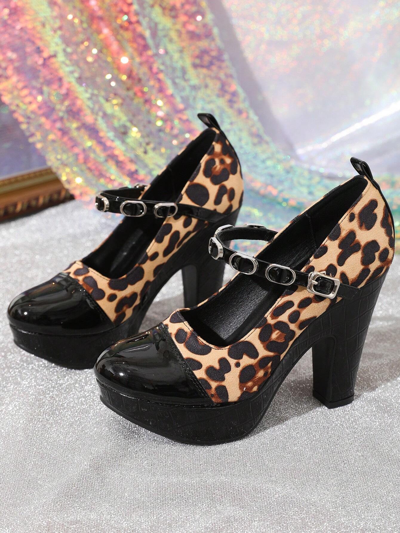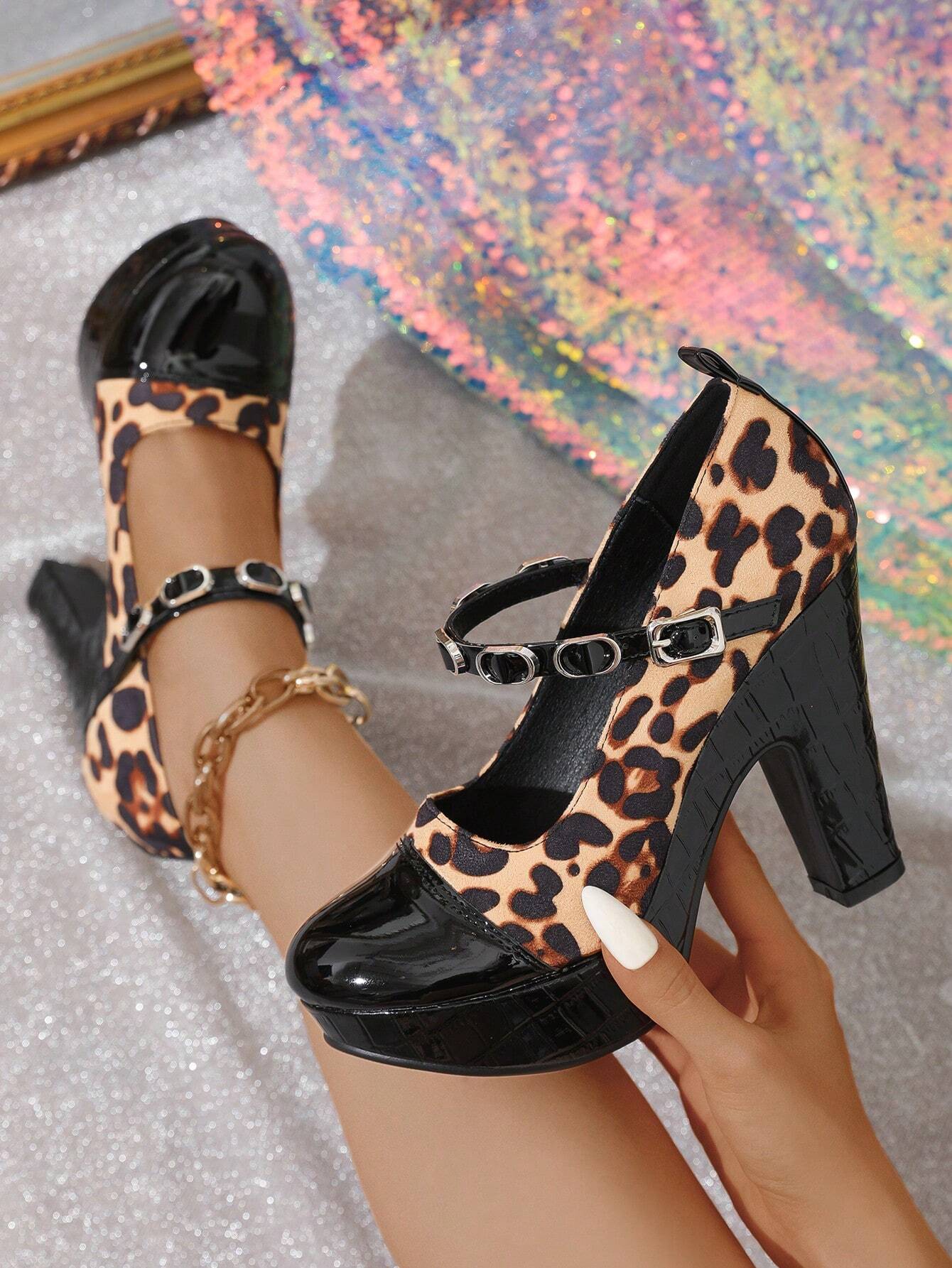 Fashion Waterproof Platform Thick Heel Leopard Print Casual Shoes For Women,