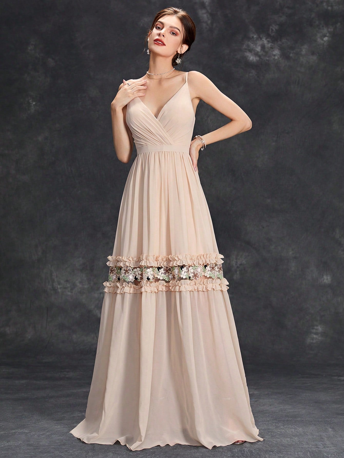 Floral Embroidery Ruffle Trim Bridesmaid Dress