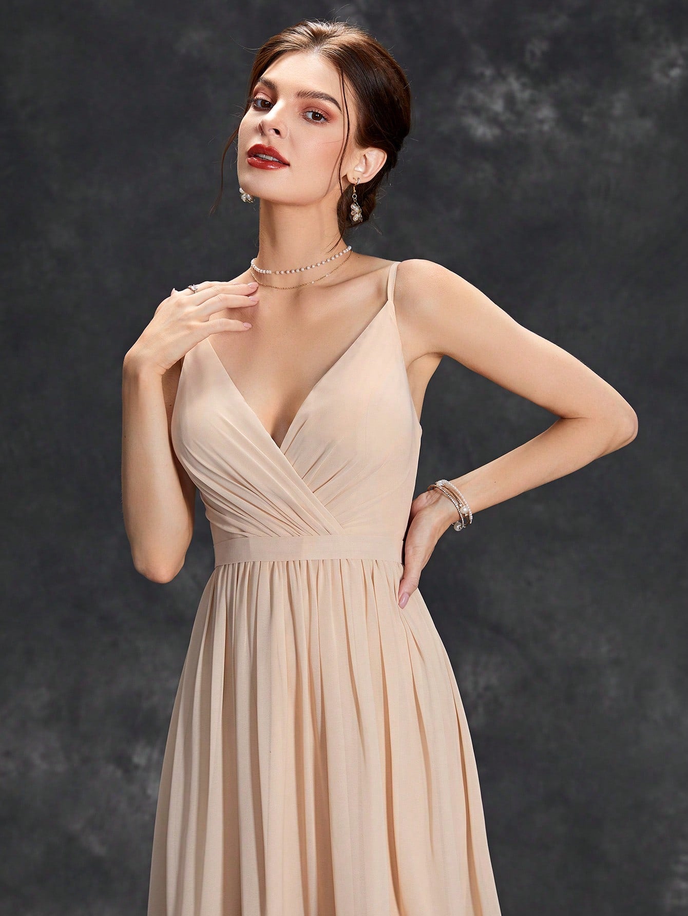 Pattern Type: Plain Details: Appliques, Wrap, Zipper Sleeve Length: Sleeveless Length: Long Type: A Line Color: Apricot...