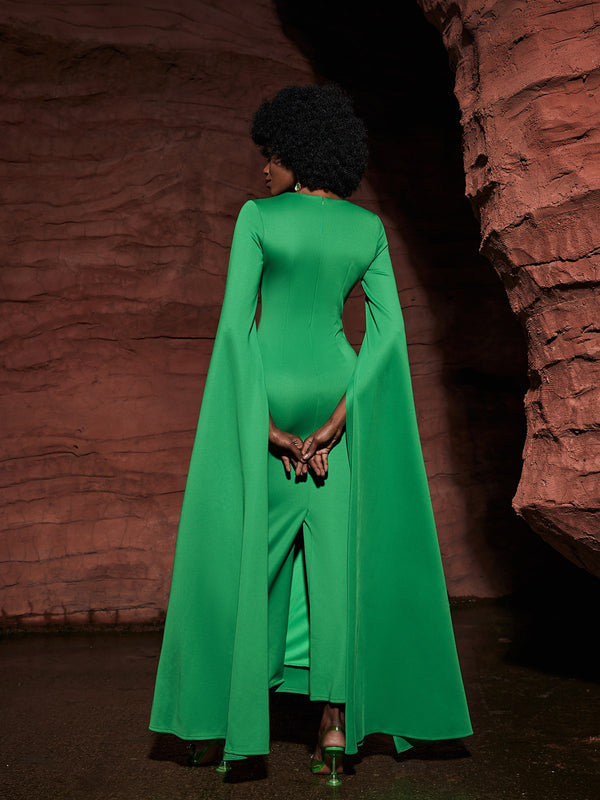 Feel beautiful in Gertie Long Sleeve Cutout Maxi Dress. Featuring an extra long split sleeve, this vibrant green maxi dress is sure to turn heads. Make a statement with the unique cutout and flowy fabric perfect for any occasion. Feel luxurious and confident in Gertie!