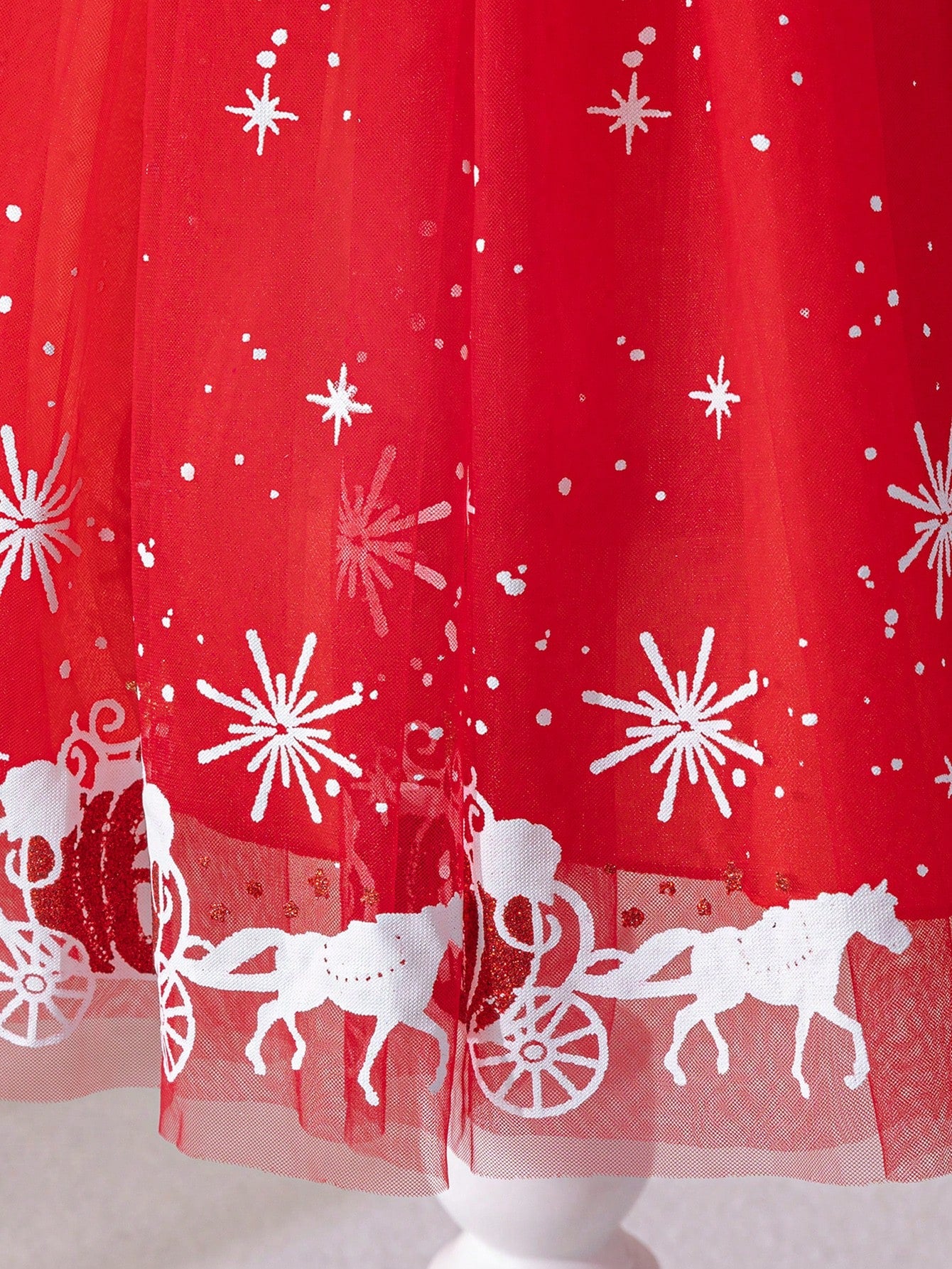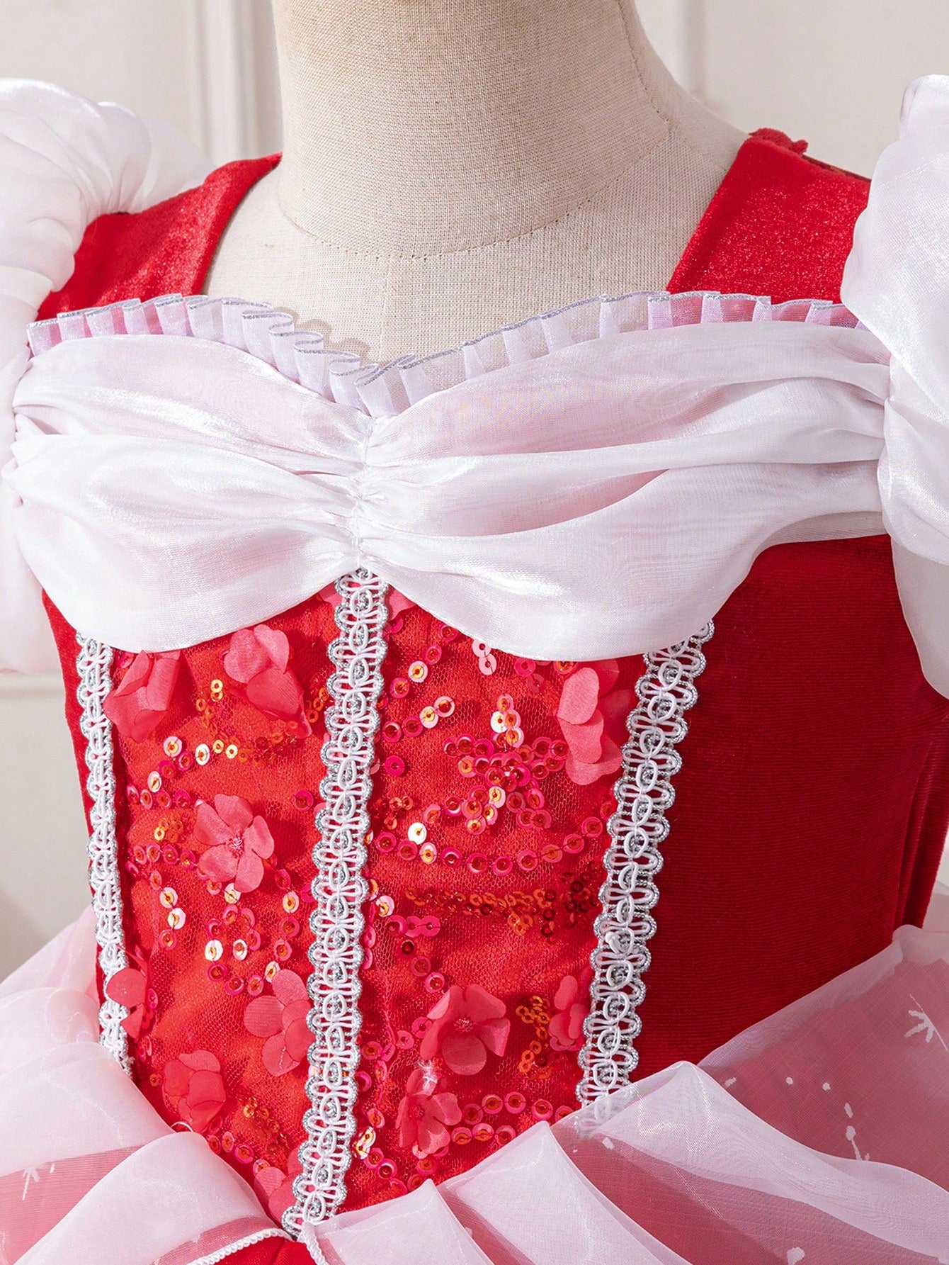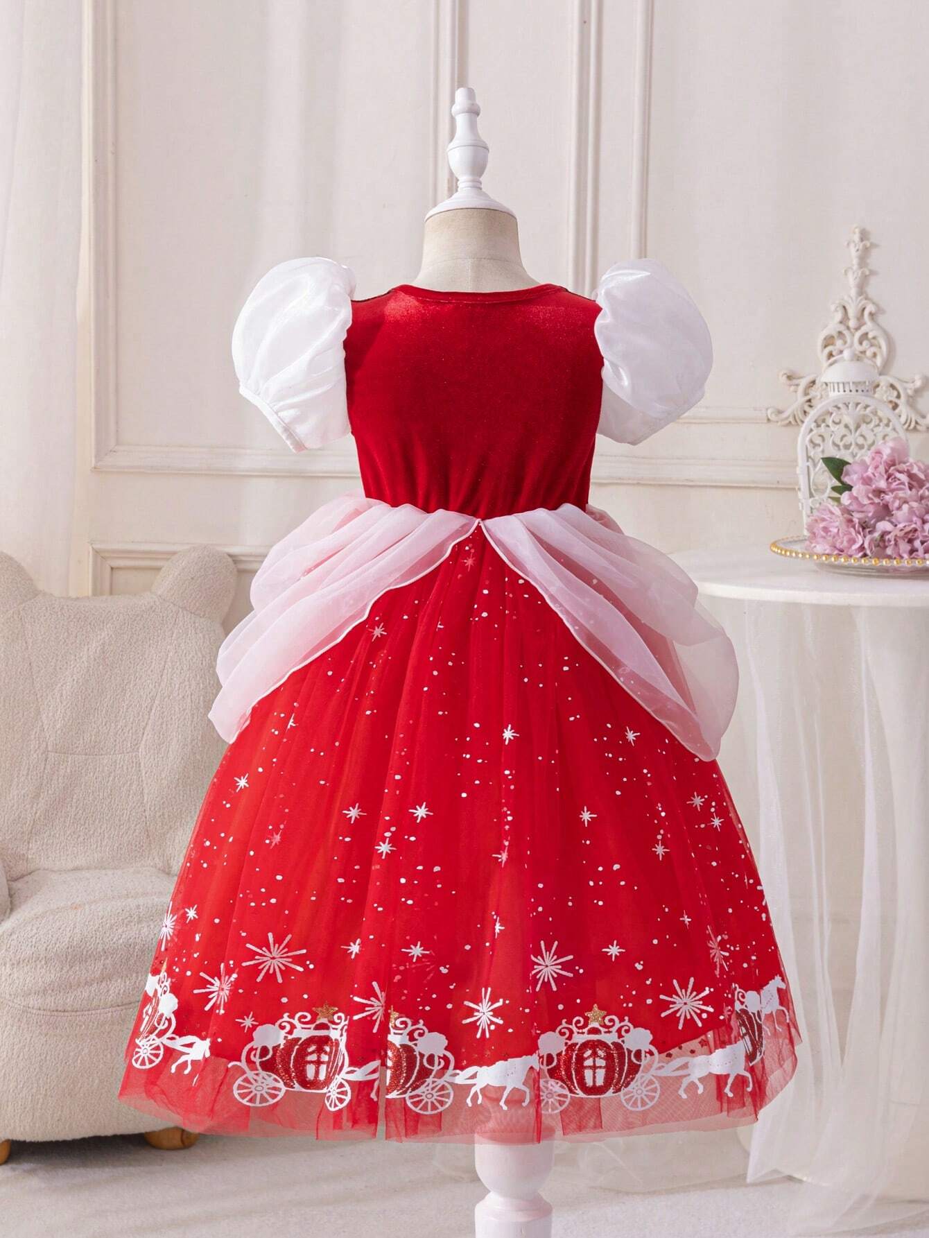Glamorique Kids Young Girl Christmas & New Year Party Princess Dress, Elegant Party Gown With Ruffled Mesh Short Puff Sleeves