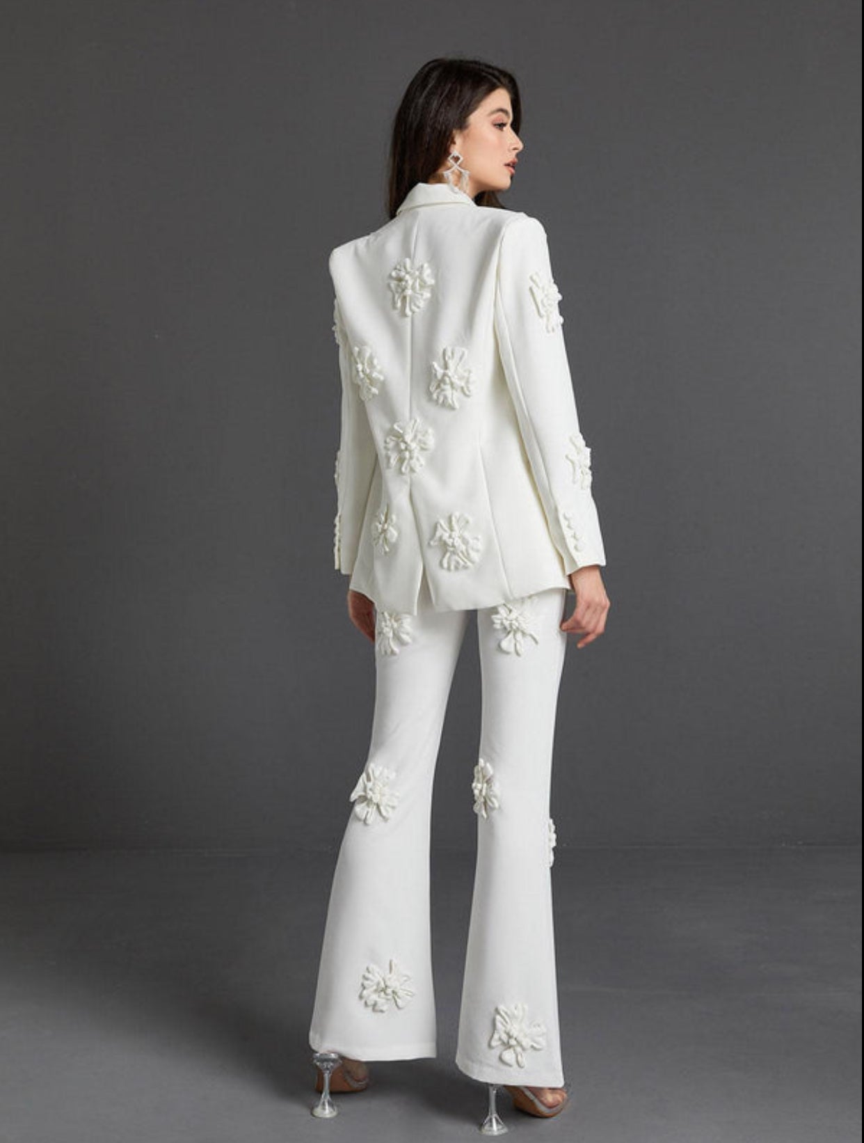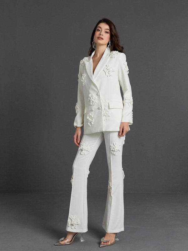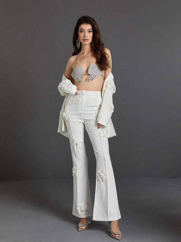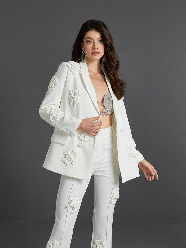 Statement suits rarely look more elegant than Indiana Floral Embellished Blazer Set In White. Crafted from the maison’s sensational white, this blazer will make an unforgettable entrance at events. Button yours over bare skin for an up-to-the-minute take on tailoring.