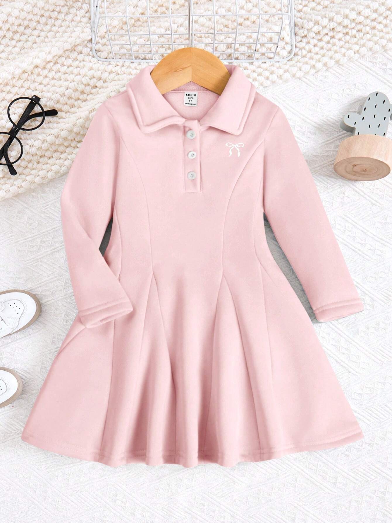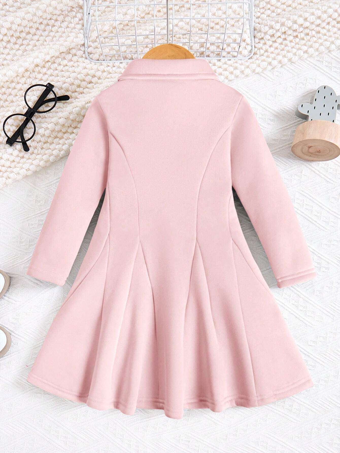 Kids Young Girl Polo Collar Vintage Waist Dress, High-End High-Quality Outfit, A-Line Dress