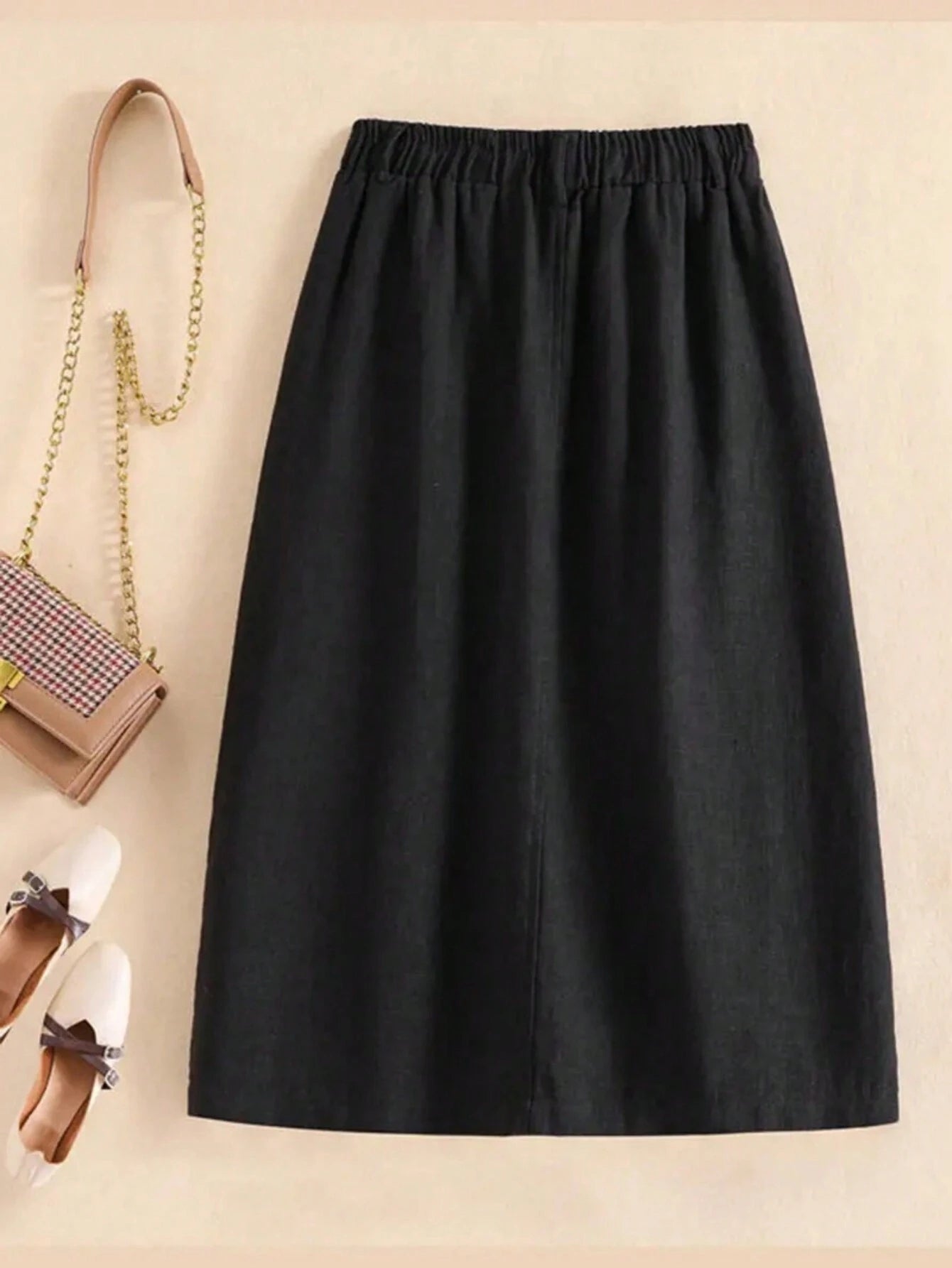 Ladies' Vacation Casual Solid Color Button-Up Skirt