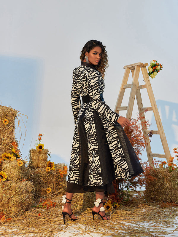 This Levia Zebra Printed Lapel Blazer Dress elevates any wardrobe. Tailored to perfection with fine fabric and premium construction, the blazer dress features a stylish zebra print and a sharp lapel. It's the perfect look for any occasion.