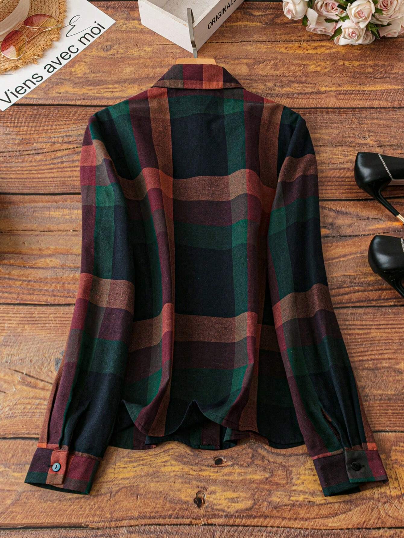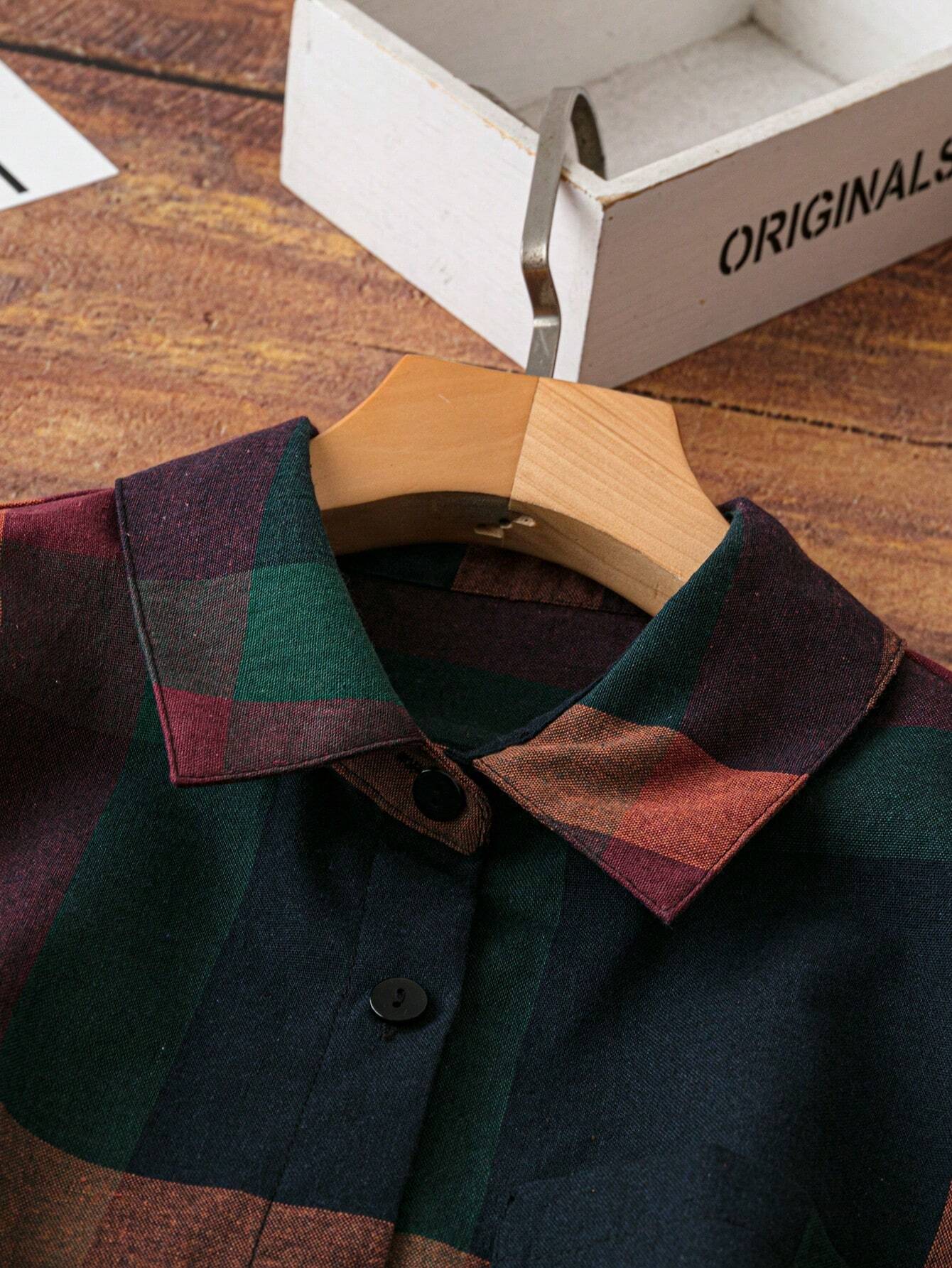 LUNE Women's Plaid Print Casual Long Sleeve Shirt