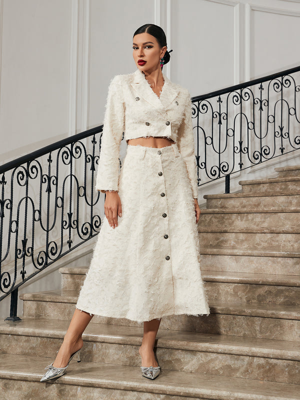Take a style risk with the Mitzi Fringe Skirt Set! Featuring a classic white color with fluttering fringe, this look will turn heads while bringing you adventure and whimsy. Dare to challenge the status quo and strut with confidence!