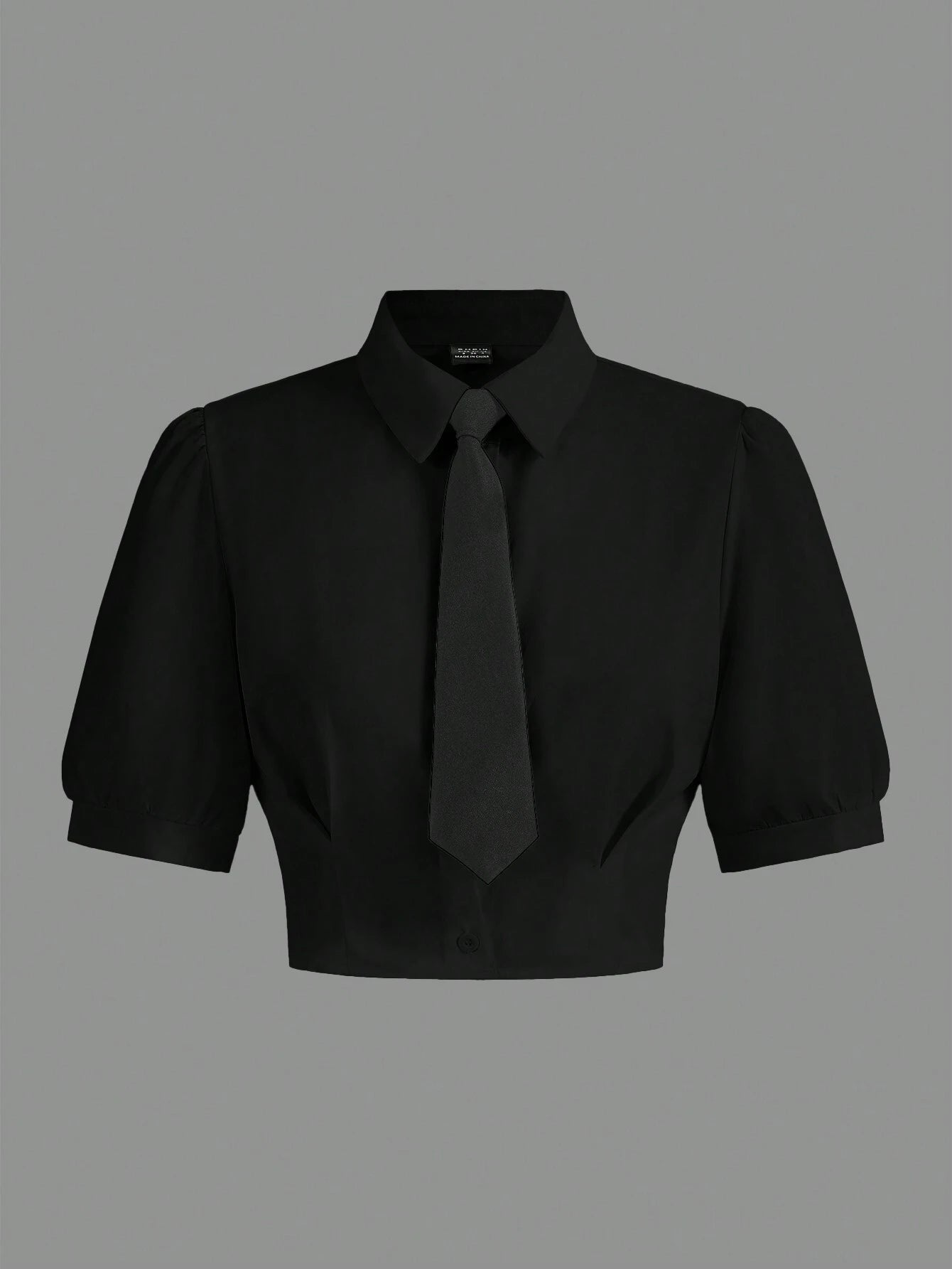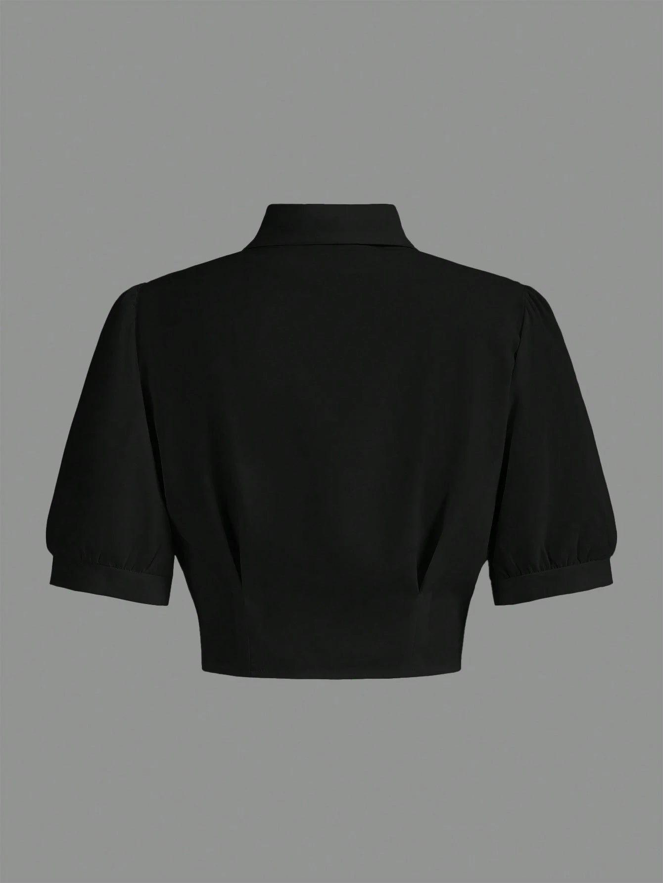 Color: Black Hem Shaped: Regular Style: Casual Sleeve Type: Puff Sleeve Details: Button Neckline: Collar Type: Shirt...