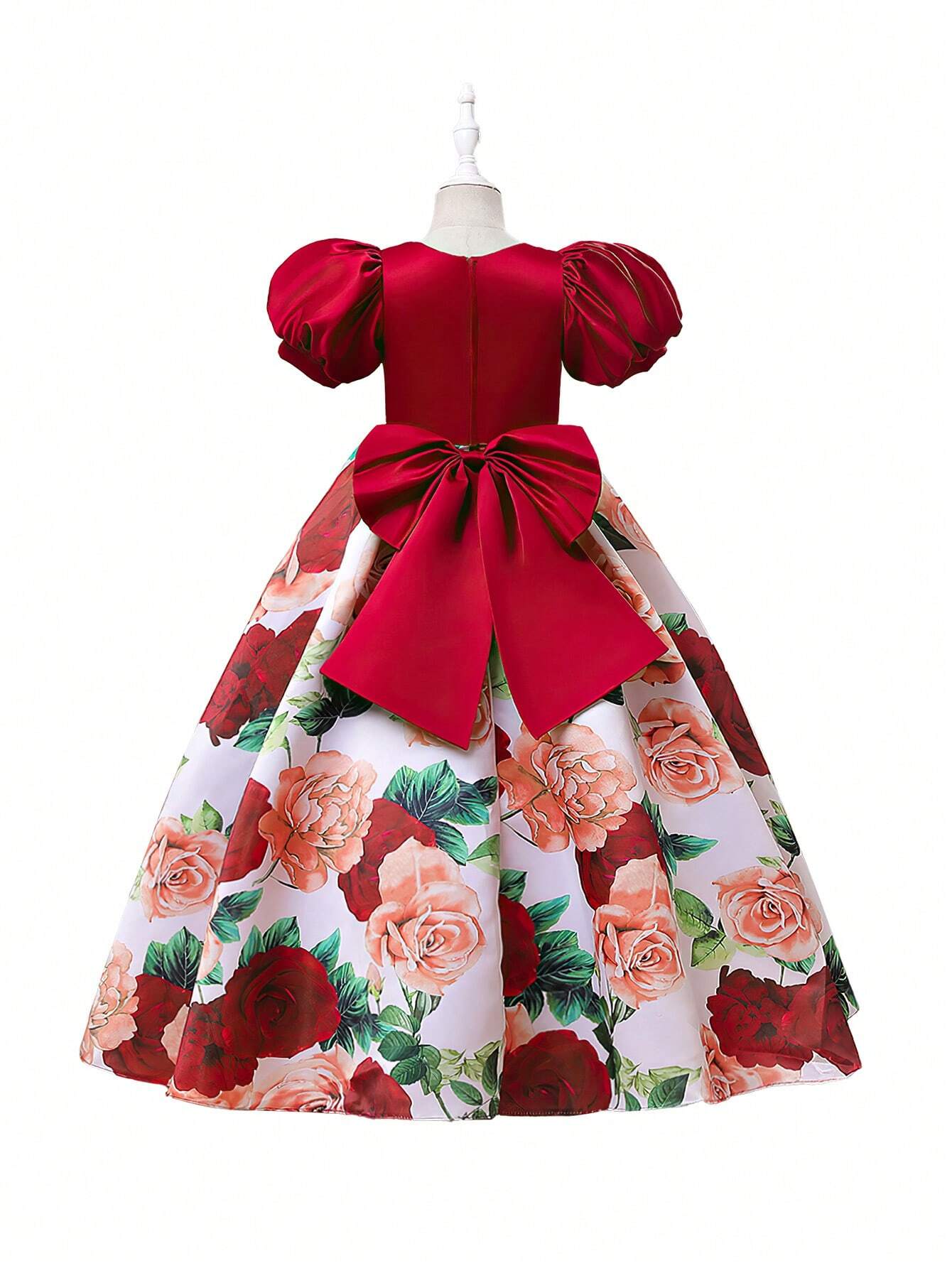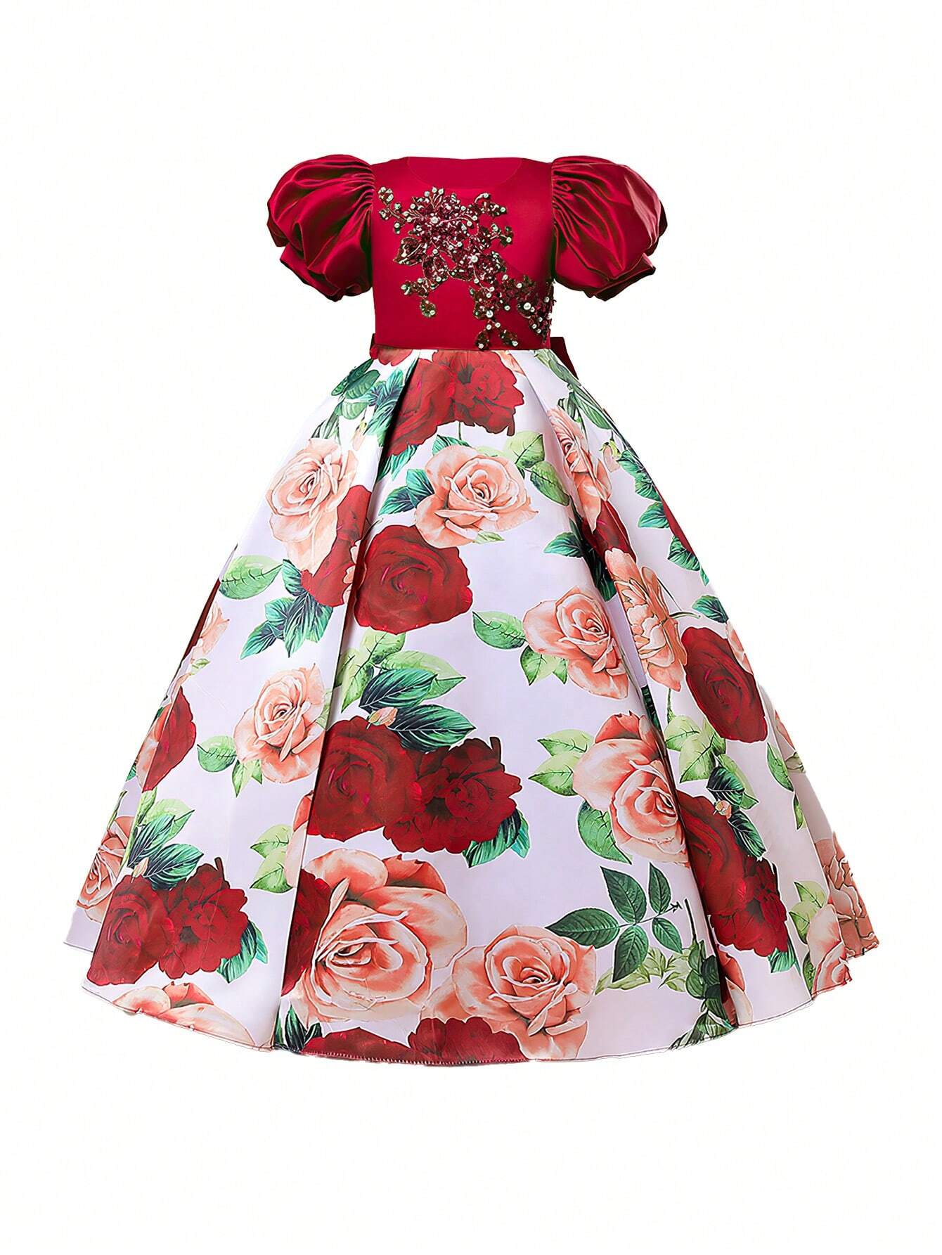 New Girls" Formal Dress In Satin With Puff Sleeves, Printed Princess Dress For Middle To Big Girls, Suitable For Piano Performance