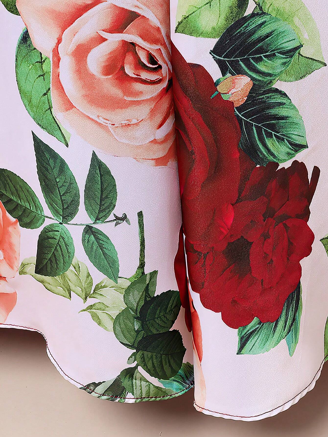 Color: Red Pattern Type: Floral, Plants, All Over Print Neckline: Round Neck Sleeve Length: Short Sleeve Sleeve...