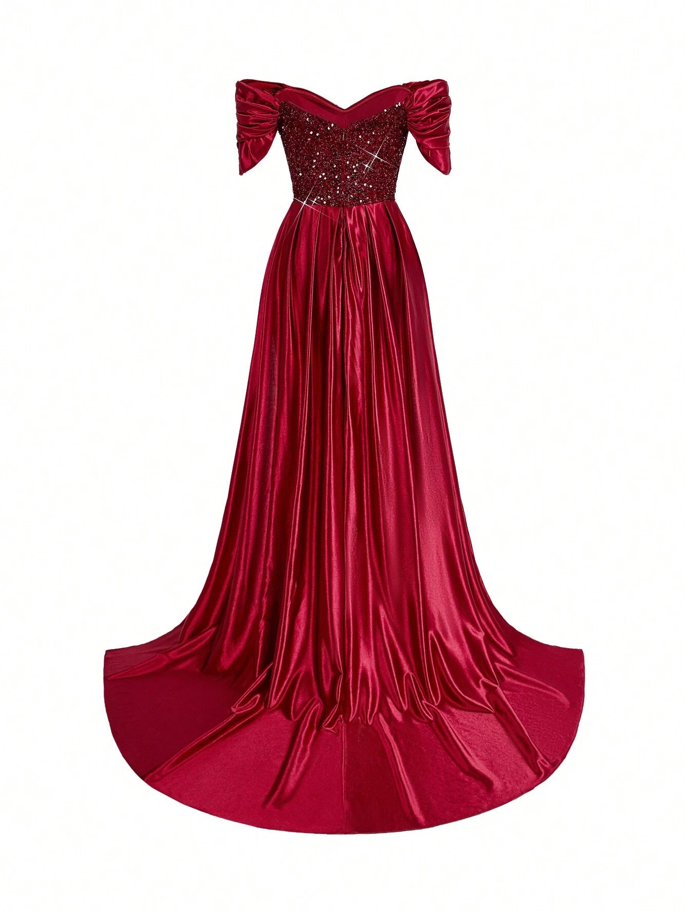 Color: Red Pattern Type: Plain, All Over Print Type: A Line Details: Contrast Sequin, Ruched, Zipper Neckline:...