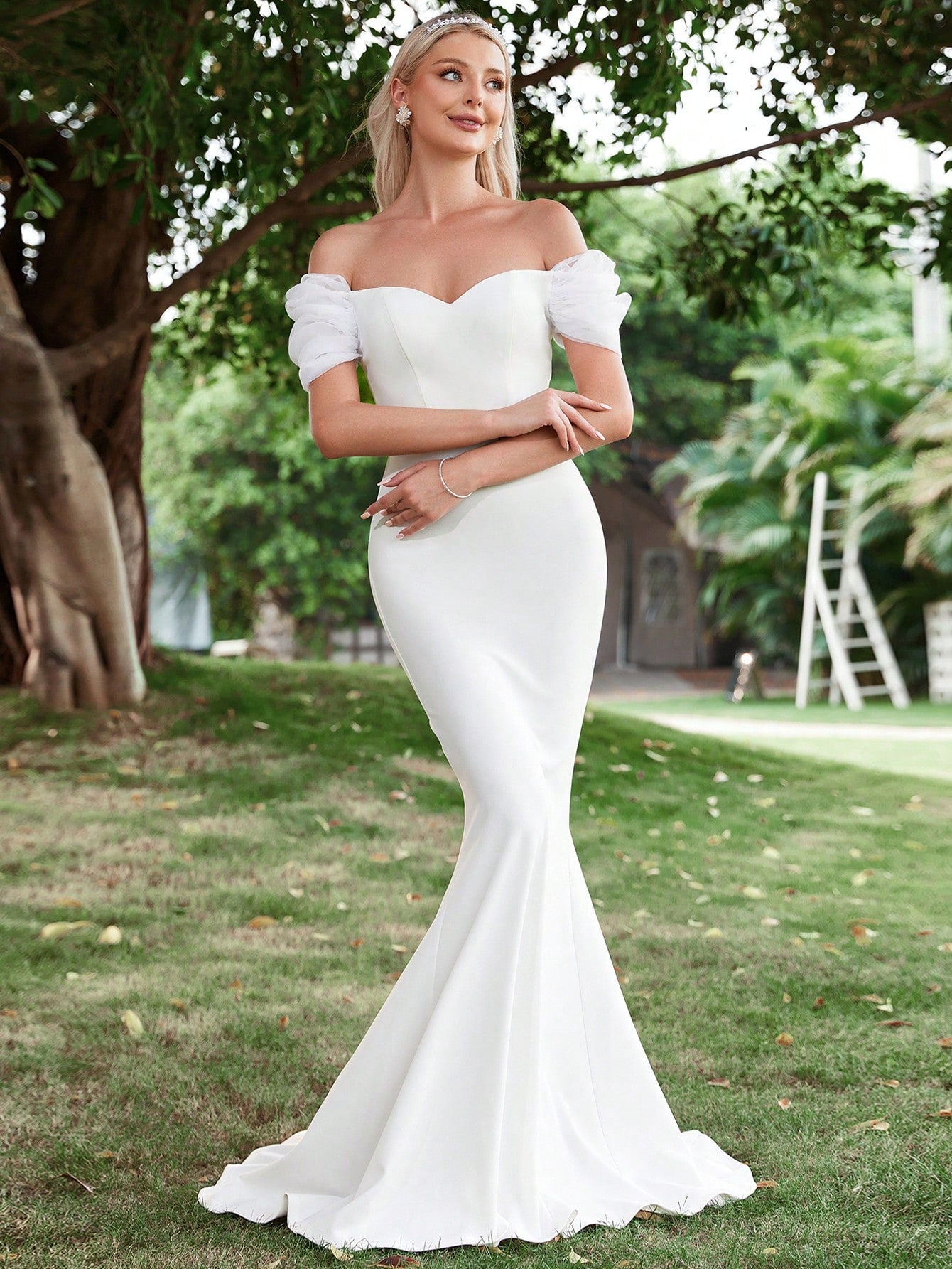 Off Shoulder Mermaid Hem Wedding Dress