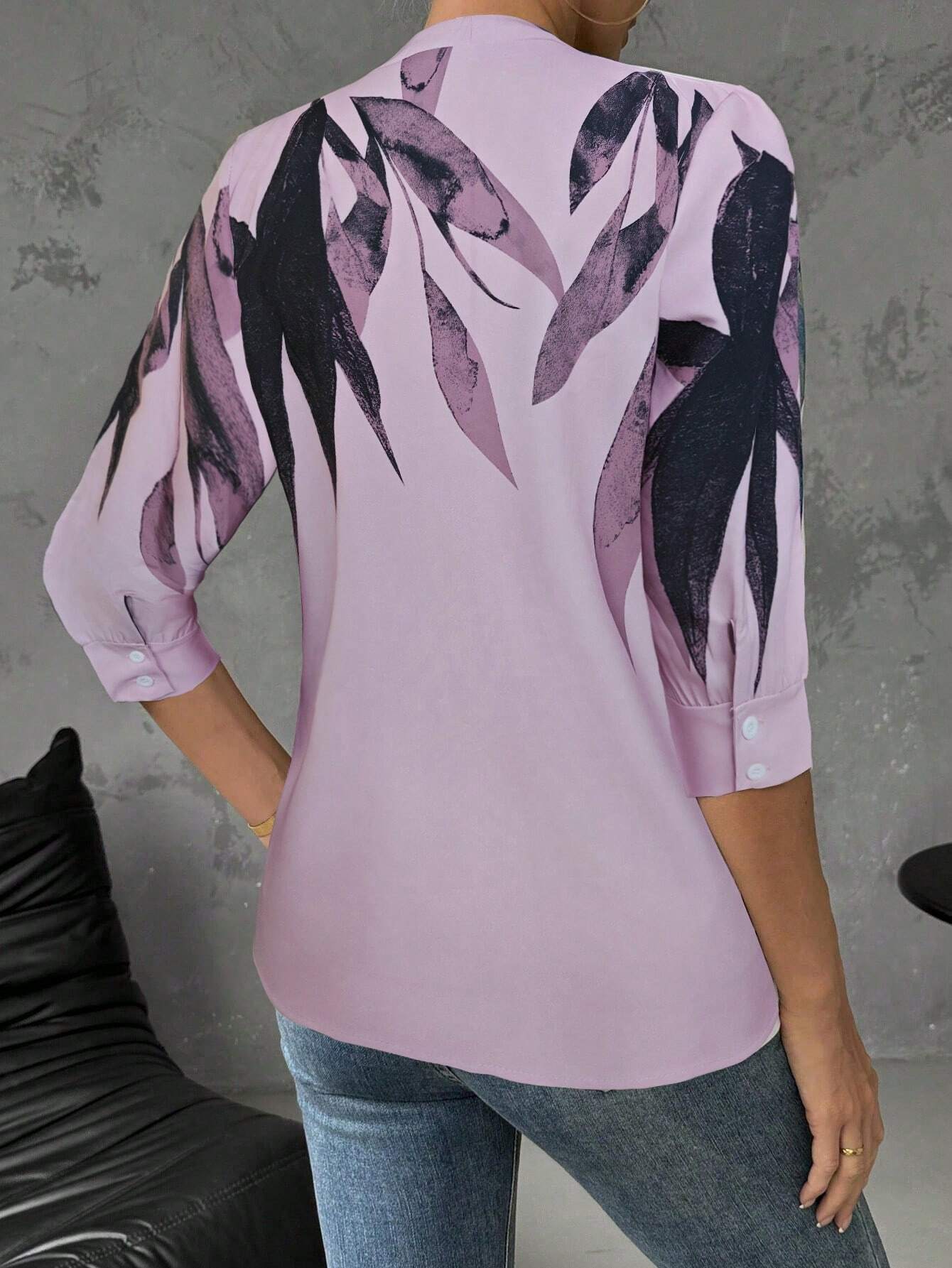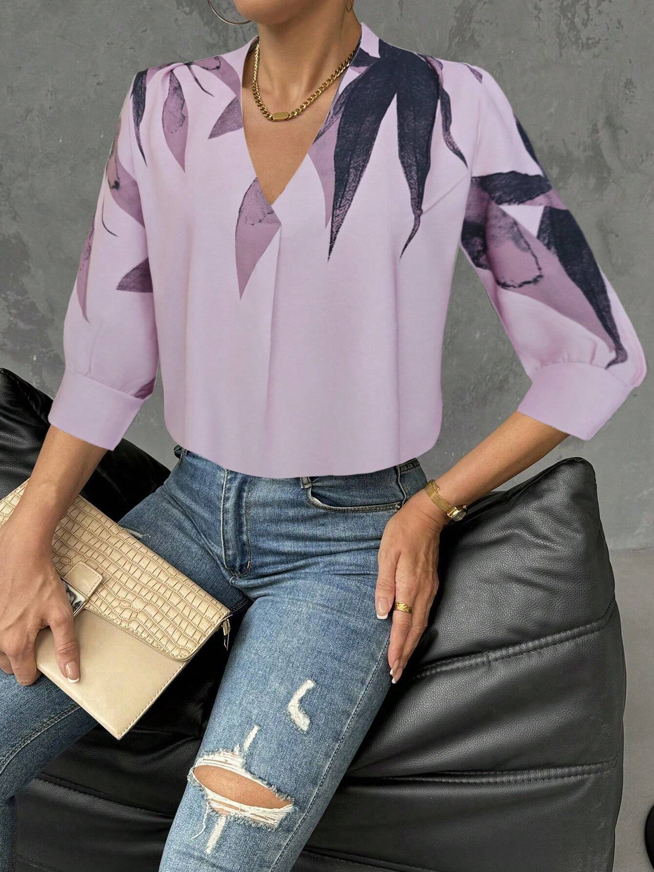 Privé Women's Graphic Print V-Neck Elegant Commuter Blouse
