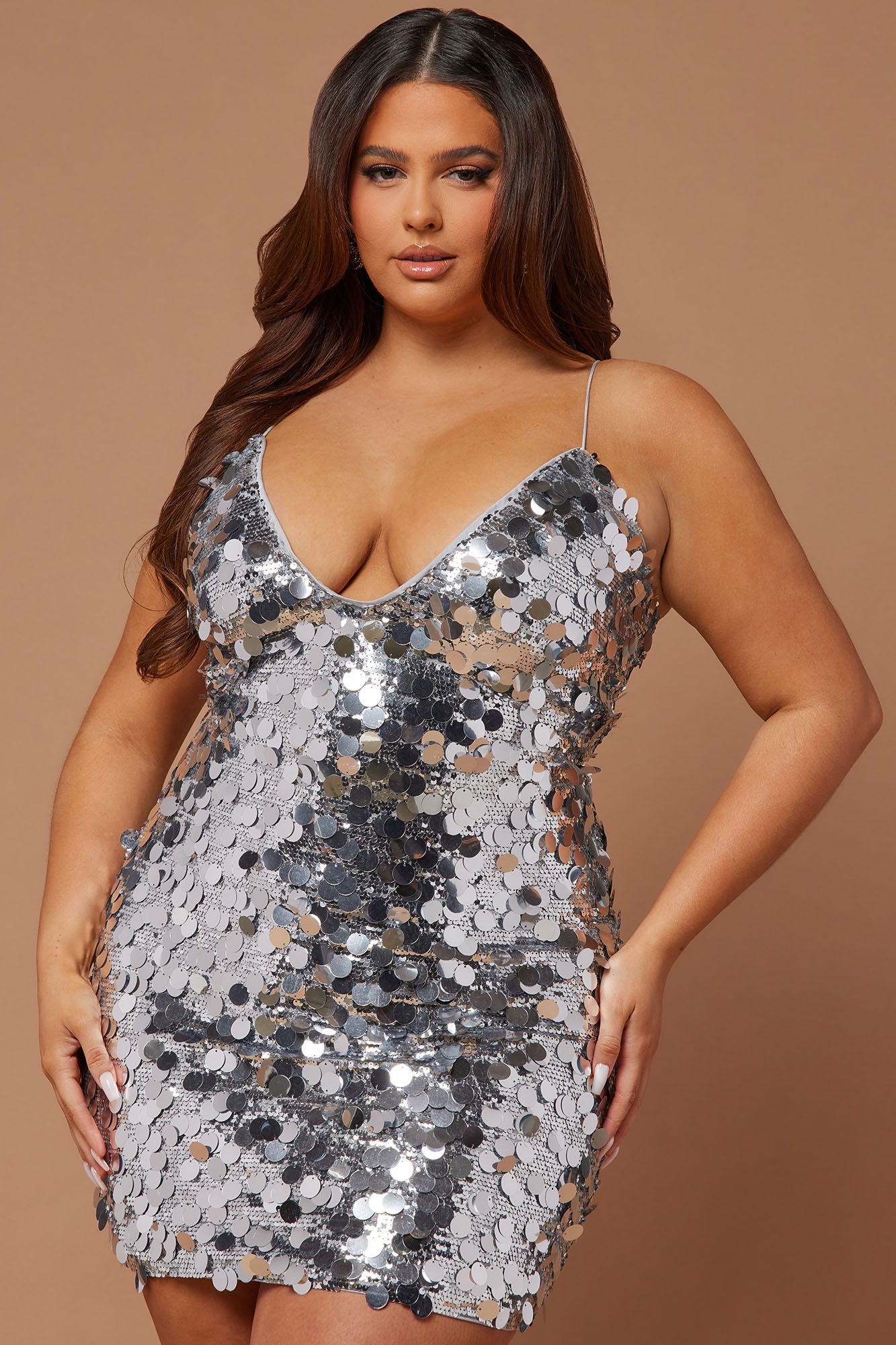 Available In Silver And Hot Pink. Sequin Mini Dress Bungee Straps Deep V-Neckline Hidden Back Zipper Lined...