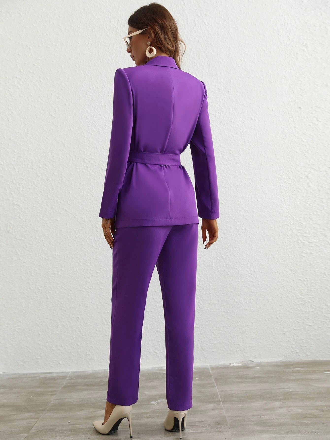Single Button Belted Blazer & Tailored Pants