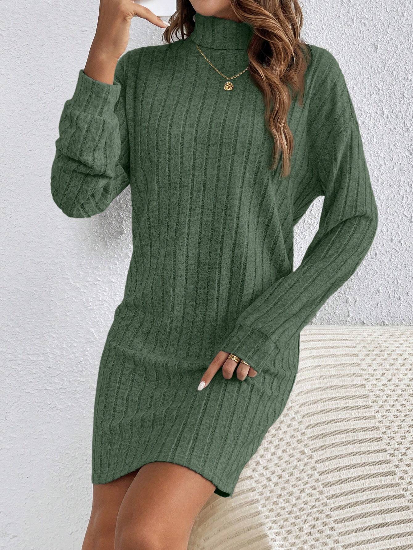 Details: Rib-Knit Neckline: High Neck Sleeve Type: Drop Shoulder Style: Casual Type: Bodycon Waist Line: Natural Hem...
