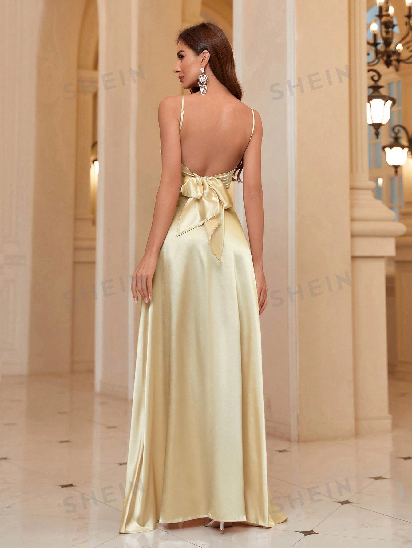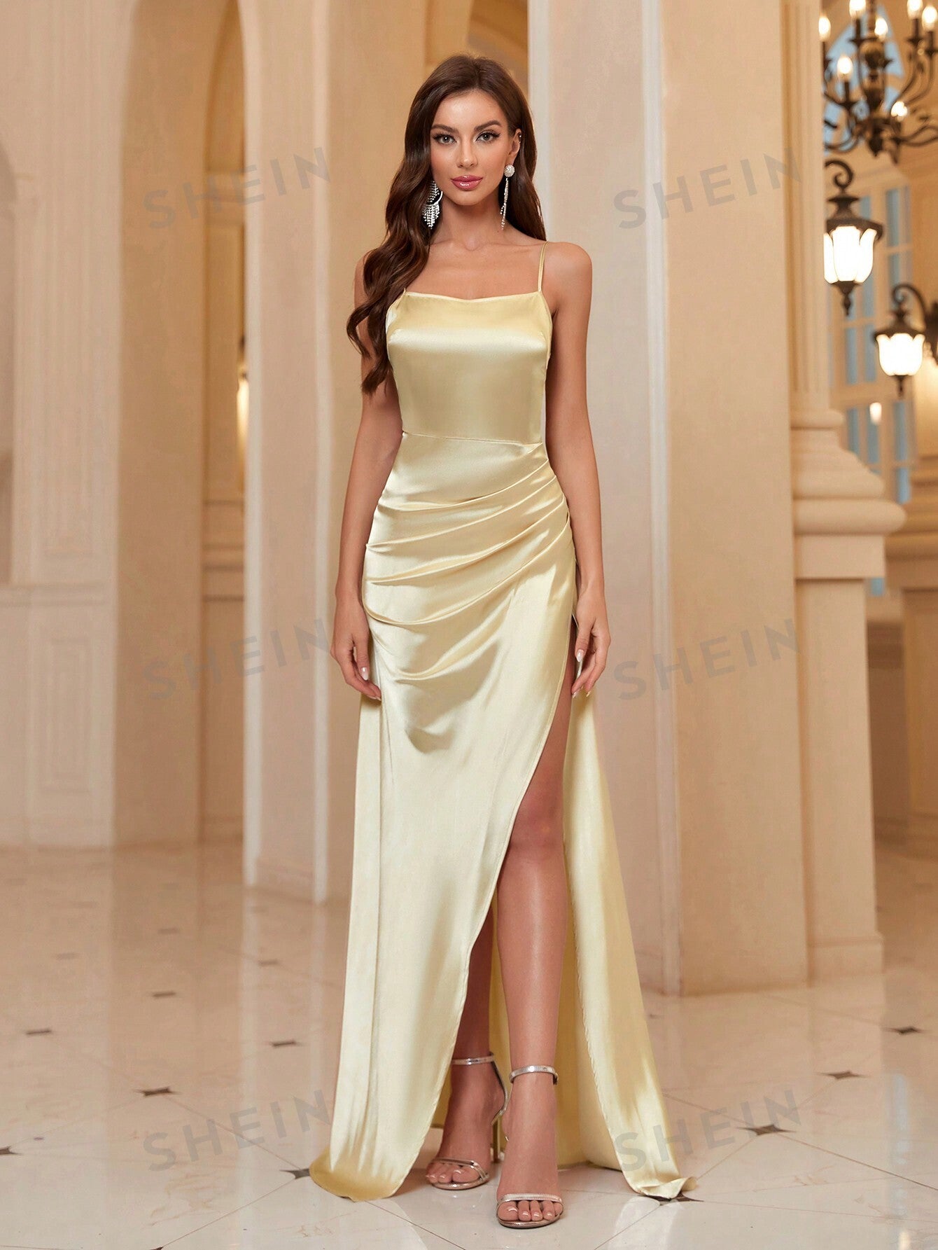 Solid Color Pleated High Slit Bridesmaid Cami Dress