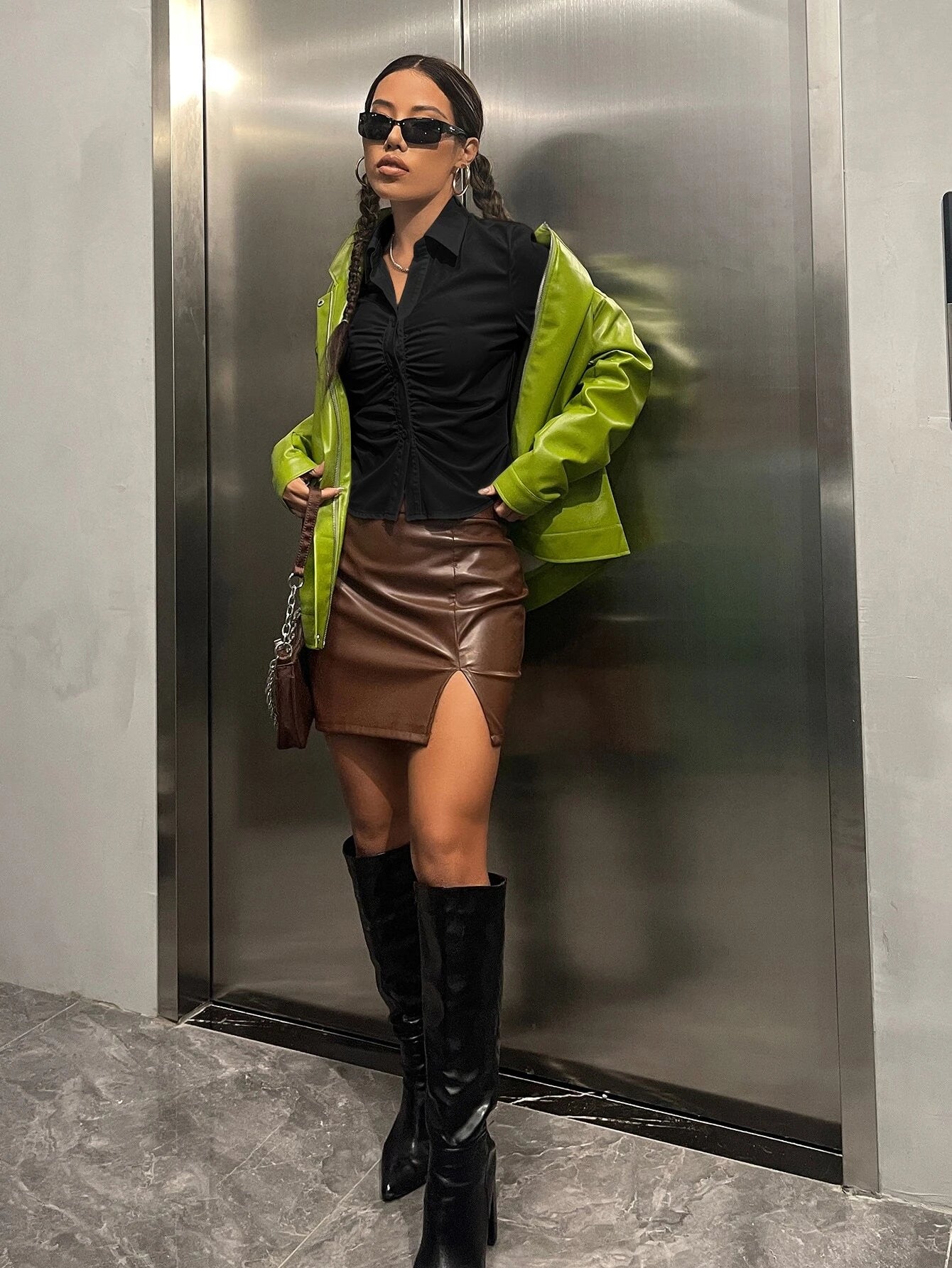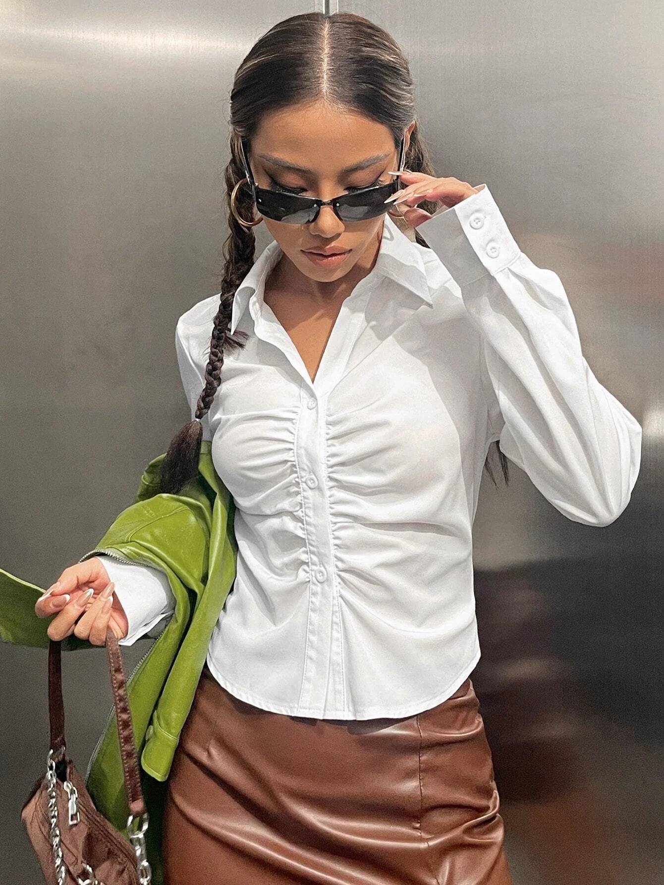 Solid Ruched Button Up Shirt