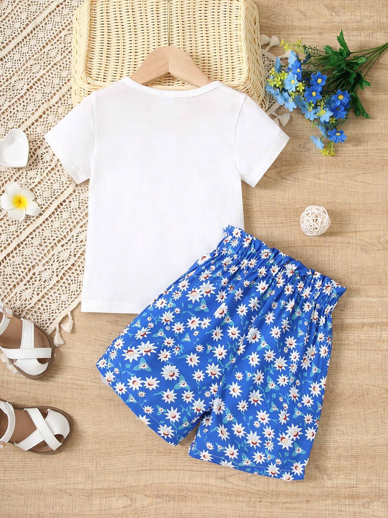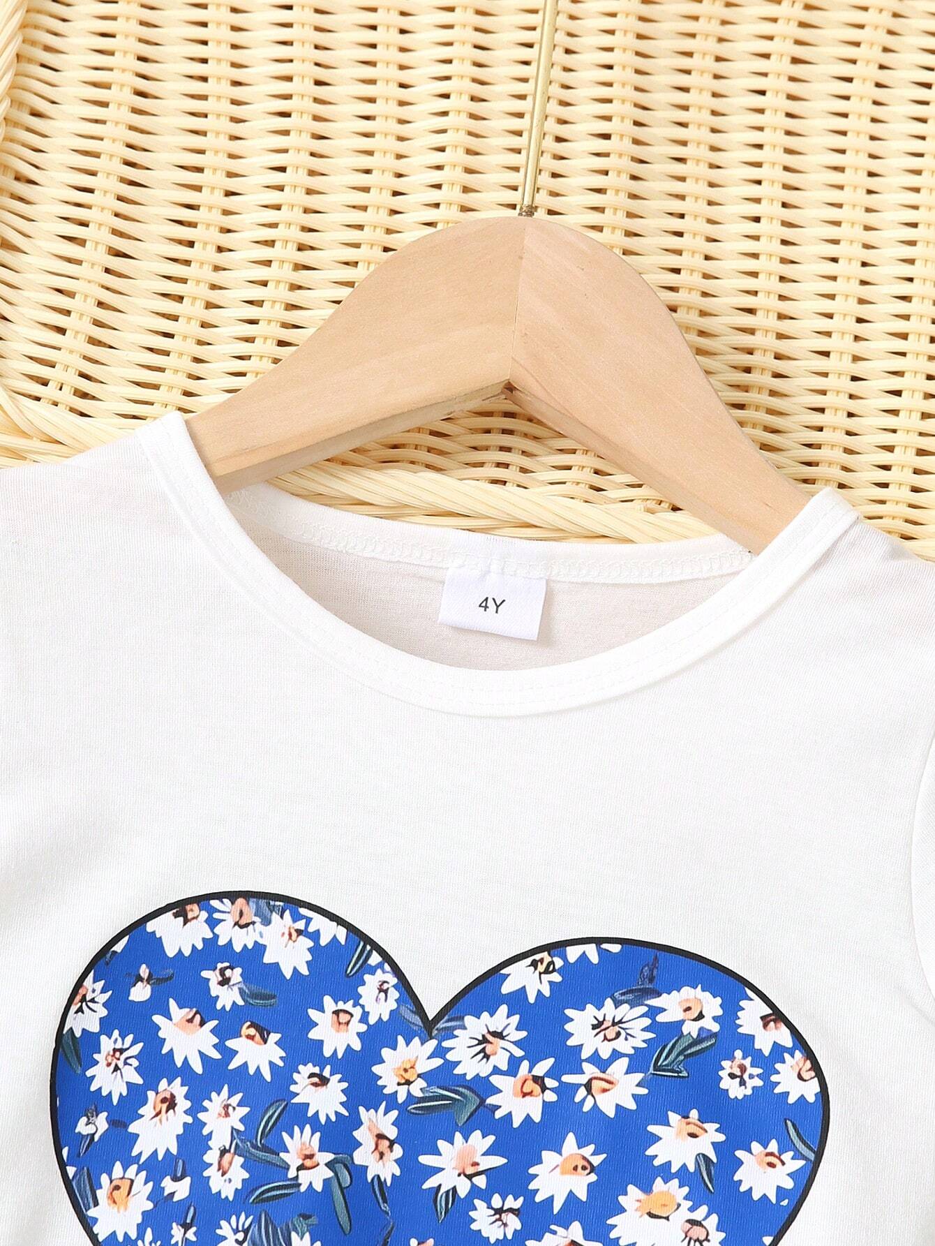 Summer Style Young Girl Casual Love Heart Printed Short Sleeve T-Shirt And Shorts Two-Piece Set