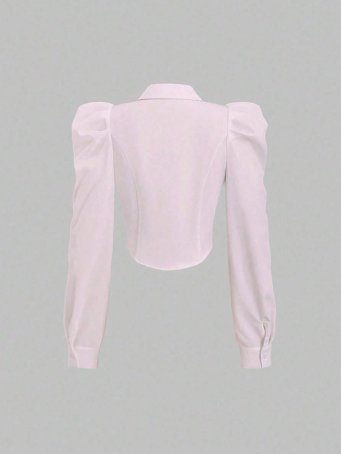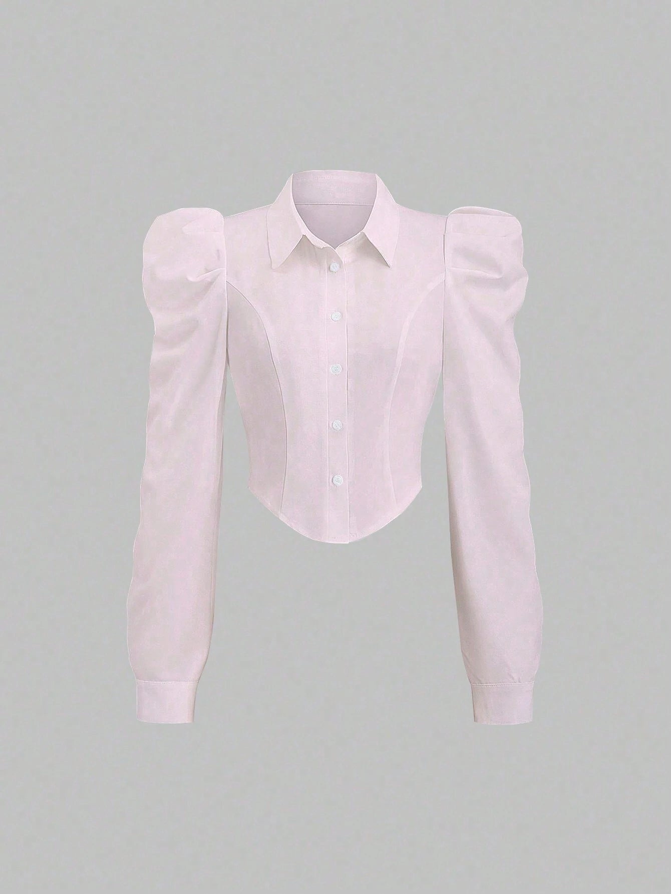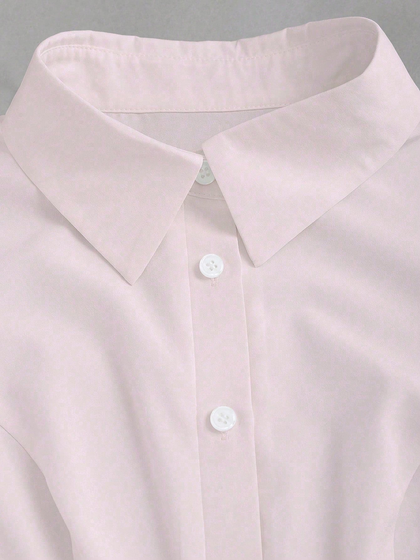 Color: Baby Pink Hem Shaped: Asymmetrical Style: Casual Sleeve Type: Leg-of-mutton Sleeve Details: Asymmetrical, Button, Button Front...