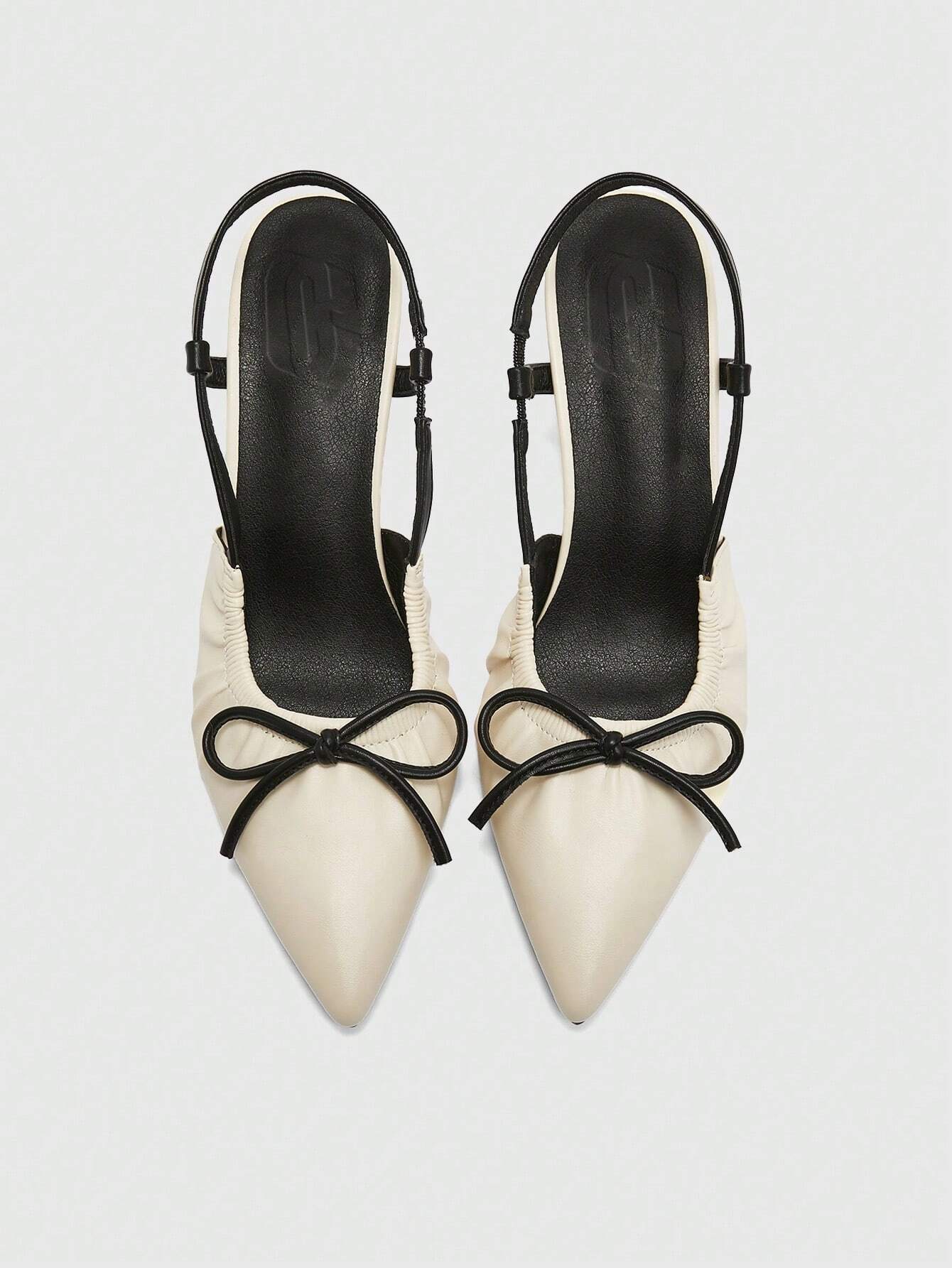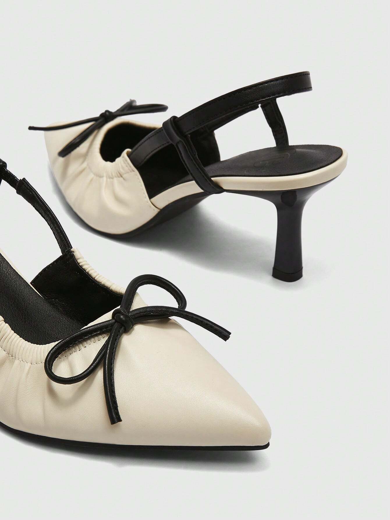Details: Bow Style: Glamorous Color: Beige Toe: Point Toe Pattern Type: Plain Strap Type: Slingbacks Heels: Stiletto...